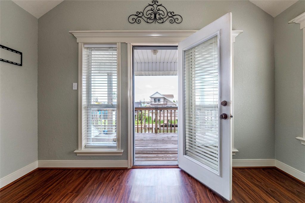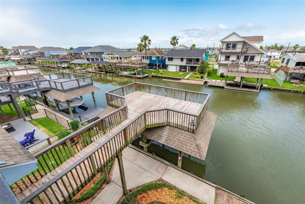 Lovely 3-2.5-1 Canal Front Tri Level home built in 2006 with Boat House, Party Deck and Catwalk in Beautiful Bayou Vista. New Roof June 2025, new A/C condensing unit July.2025 and Vinyl bulkhead will be put in July,2026(per seller). Open Living, Dining and Kitchen. High Ceilings in Living Room and Primary Bedroom. Kitchen has Granite Counters, Stainless Appliances, Gas Stove, Custom Cabinets, Pantry and Breakfast bar. Tile and Laminate Floors. Large Primary Bedroom is on 3rd level with Executive Primary Bath, Walk-In Closet, Private covered Deck and Incredible Views. Primary Bath has custom marble like vanity with double sinks, soaking tub, Separate shower and glass block window. 2x6 exterior walls. 2nd and 3rd level have a covered deck. Breezeway. Laundry Room is in the home. Enjoy relaxing evenings watching amazing sunsets from your decks. Easy access to Jones Lake and Galveston Bay. Gulf-fish and crabbing from your own front yard. All measurements are approximate.