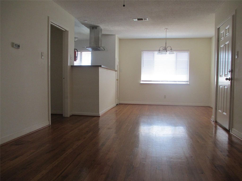 This second floor apartment in a very private 4 apartments building. Situated in a quite residential neighborhood. Across street from Linkwood park. About 3 miles to medical center, Rice University and Village. Few blocks to Jogging and Biking trail. One assigned off street covered parking. Hardwood floor and tile = no carpet. Updated bathroom. Washer and Dryer in the unit. DID NOT flood during Harvey. This unit is very bright and clean. Owner pays water. sewer and trash.