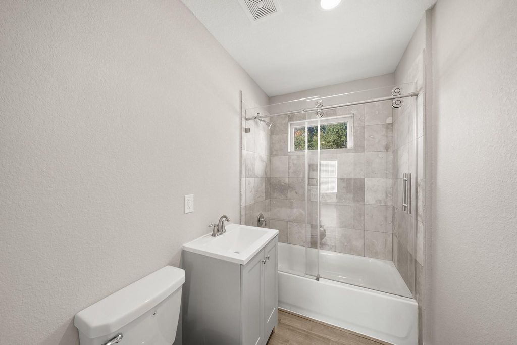 Completely renovated & move-in ready, this beautifully updated single-story home sits on a spacious corner lot w/ a huge fenced yard, extended driveway, & oversized 2-car carport. The seller completed a full renovation including PEX plumbing, all-new appliances, recent A/C, recent electrical, a redesigned kitchen, updated bedrooms, and renovated bathrooms. The seller also added a second full bathroom & expanded the primary bedroom, increasing functional living space. The open-concept layout connects the living, dining, and kitchen areas for everyday living and entertaining. The kitchen features white cabinetry, quartz-style countertops, a gas cooktop island, stainless steel appliances, and a modern vent hood. Generously sized bedrooms include a private primary suite with an expanded ensuite bath. Centrally located with easy access to major roads, shopping, dining, and daily conveniences.