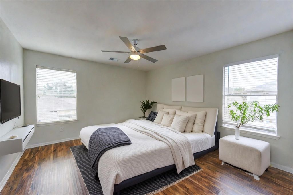 Welcome home! This beautifully designed and updated home offers open-concept first-floor living with a spacious island kitchen that flows seamlessly into the family room"”perfect for entertaining. The primary suite is conveniently located downstairs and features a double vanity, garden tub, separate shower, and walk-in closet. You'll also enjoy a formal dining room, half bath, and mud room on the first floor for added convenience. All appliances are included for added ease and comfort. Upstairs, you'll find three generously sized bedrooms, a full bathroom, and a huge family/game room"”ideal for movie nights, play space, or a home office setup. Located in Fort Bend ISD, this home sits in a quiet, well-kept, established neighborhood and is conveniently close to shopping, dining, and entertainment. The home is currently occupied and will be available for move-in on 4/15. Room sizes are approximate and should be independently verified.