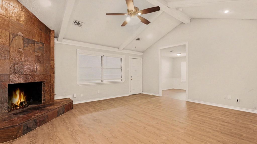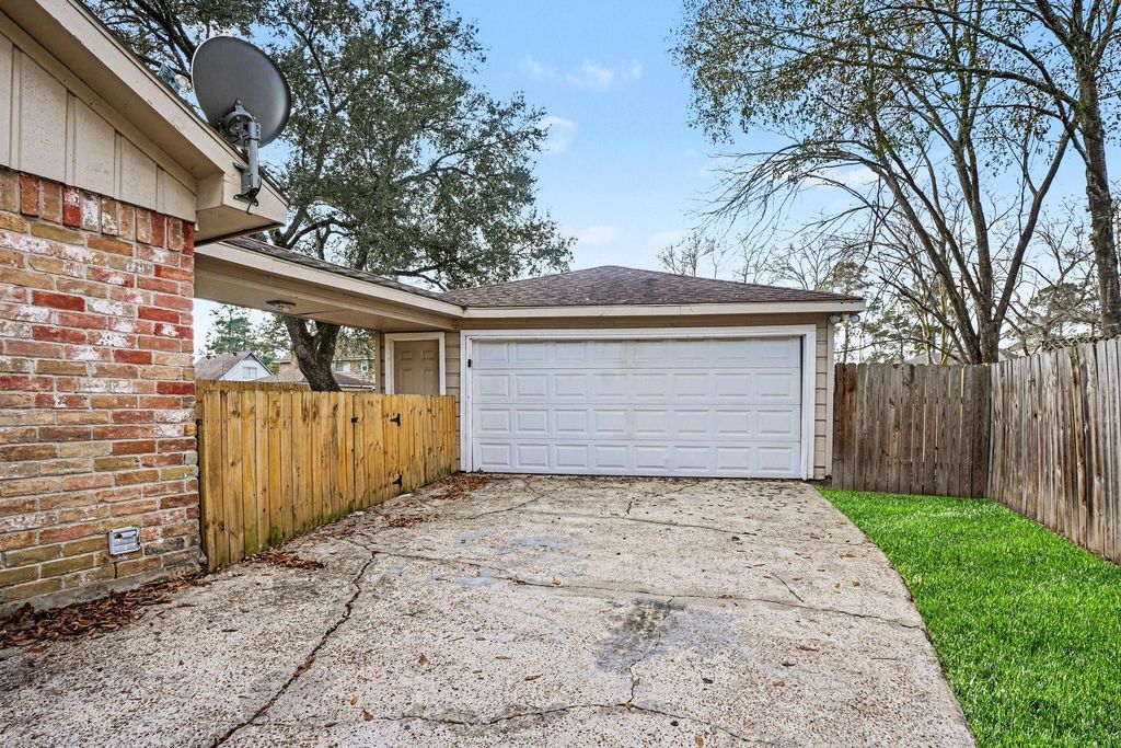 Move-in ready four-bedroom, two-bathroom home in Kingwood. The primary living room features vaulted ceilings and a cozy fireplace, creating an airy and grand atmosphere throughout the main living space. The updated kitchen boasts granite countertops and stainless steel appliances, ensuring easy maintenance for cooking and cleaning. The primary suite includes large windows that fill the room with natural light and features a private ensuite bathroom. Conveniently located near top-rated schools, parks, shopping, and dining, this home offers the perfect blend of comfort and community. Schedule your showings today!