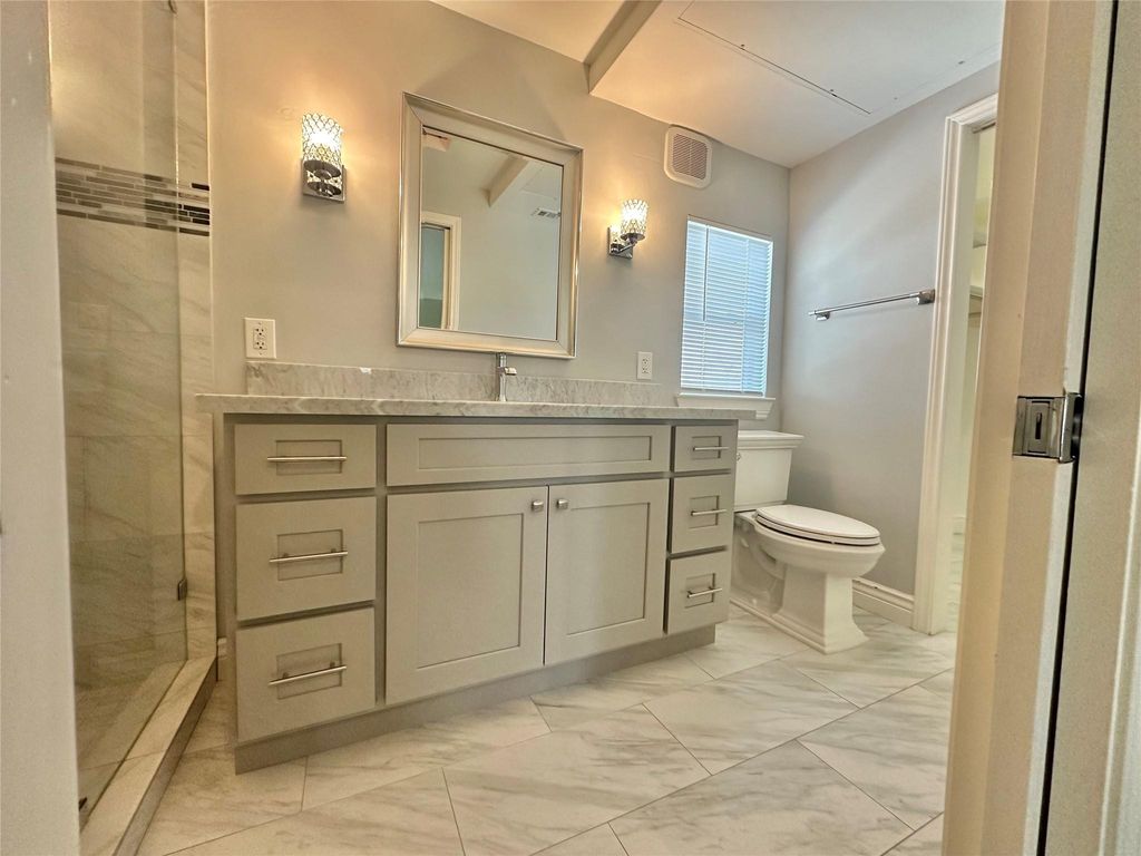 Beautiful home recently renovated. The open layout offers a spacious living and dining area, along with a kitchen featuring granite countertops and a large island. The stove, refrigerator, microwave, washer, and dryer are all included. The oversized backyard is perfect for relaxing or entertaining, with a covered patio ideal for gatherings with family and friends. The home also features a spacious balcony, providing additional outdoor living space. Property also includes a storage space in the backyard. This home is a must-see!