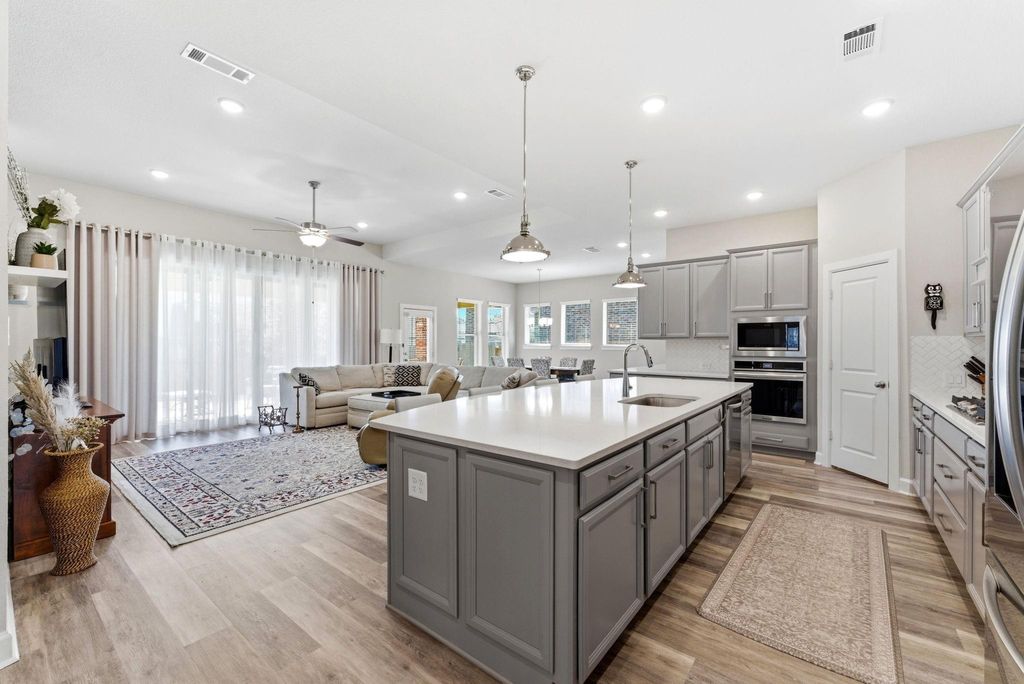 This impeccably maintained 4 bedroom, 3 bath residence with a 3 car garage offers a refined open concept design tailored for elevated living and effortless entertaining. The chef's kitchen features abundant cabinetry, extended countertops, an oversized island, and a walk-in corner pantry all flowing seamlessly into expansive living and dining areas filled with natural light. A private guest suite and well-appointed secondary bedrooms provide flexible accommodations, while a dedicated study offers an ideal space for a home office or media room. The Owner's Retreat presents a spa inspired bath and generous walk-in closet. An expansive east facing covered patio enhances the home's livability, creating a tranquil outdoor extension of the interior. A UV light purification system integrated into the HVAC promotes enhanced air quality. All this is located in The Woodlands Hills with resort-style pools, a state of the art fitness center, yoga classes, and miles of shaded trails.