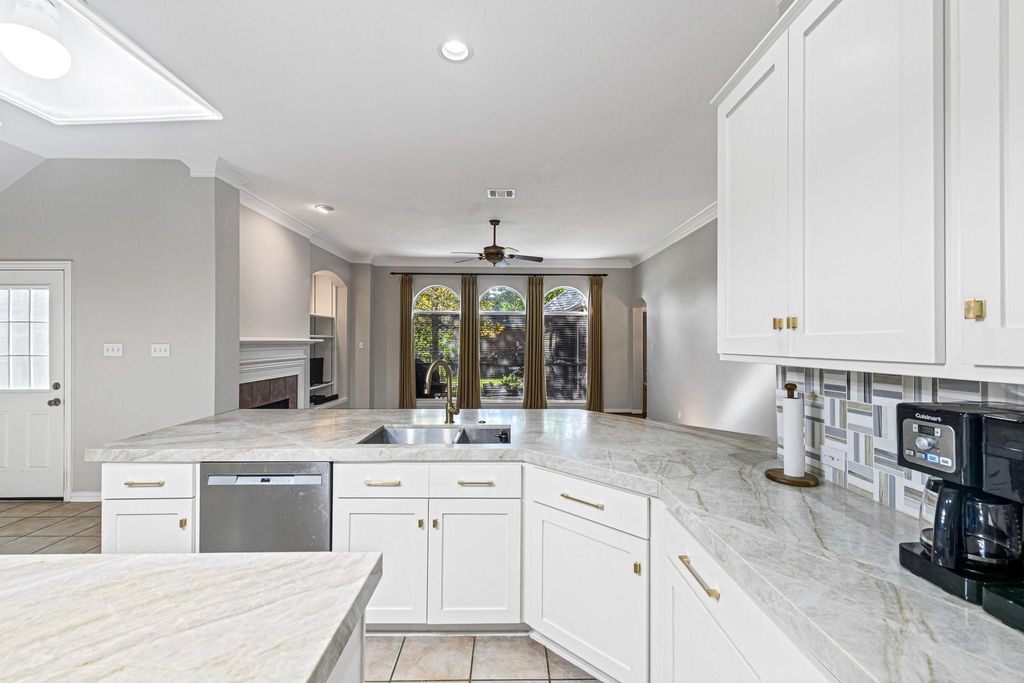 Beautiful and very popular David Weekly brick-all-around floor plan and this beautiful home is located on a lovely cul-de-sac street and fronts a gorgeous view of the lake. From the wood dock, the view and scenery will make you feel you have visited your own personal lake. Oh. Go ahead and fish from your own dock. Perhaps a fisherman's story, but you can catch some 4-5-pound fish, catch and release please. This home is priced to sell. Wonderful value. Beautiful interior design with many updates including A/C; ductwork; roof; and furnace. Check this out. The HVAC system is zoned with 2 A/C units and 2 furnaces. Very nice for a one-story home this size. Nice job by the builder. Nice kitchen updates including Quartz counters. Very spacious study with built-in cabinets. Split floor plan and a very large primary bedroom. It's huge. The back yard is the prize with the gorgeous lake access. This home is a wonderful value. You must check it out.