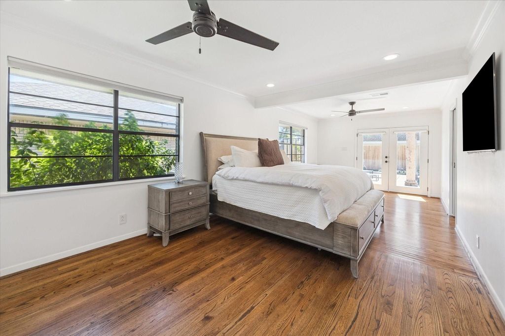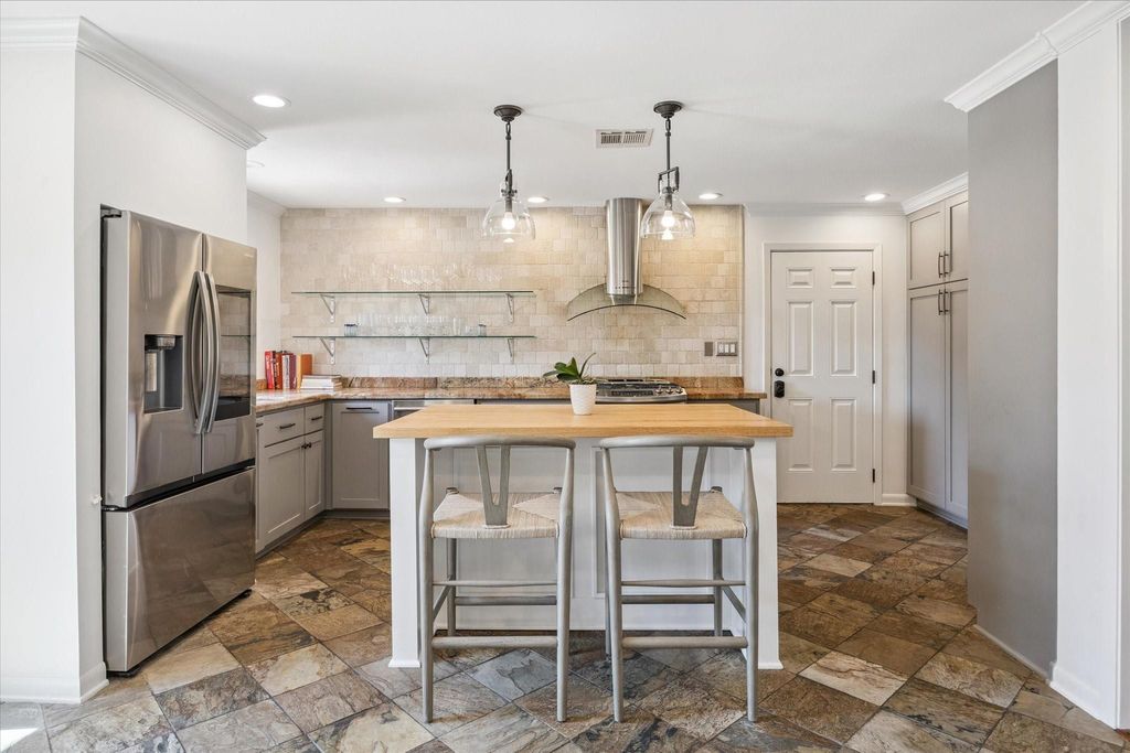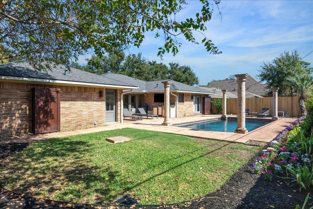 Gorgeous mid-century ranch in sought-after Lazybrook, masterfully updated with timeless style. This 2BR/2BA retreat offers open-concept living, rich wood and slate floors and natural light through expansive picture windows and French doors. A seamless layout perfect for daily living and entertaining. The gourmet kitchen boasts ample storage and modern finishes. The spacious primary suite includes dual closets, a spa-inspired bath with double vanities and walk-in shower and direct pool access. Step outside to a private resort-style oasis with a sparkling pool, outdoor kitchen featuring a beverage fridge, ice maker and lush landscaping. New A/C, new fence, surround sound with audio equipment. Located on a quiet cul-de-sac next to green space. This home perfectly blends sophistication, comfort and a prime location. Conveniently located near hike & bike trails, popular restaurants & shopping with easy access to major freeways.