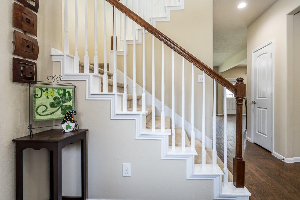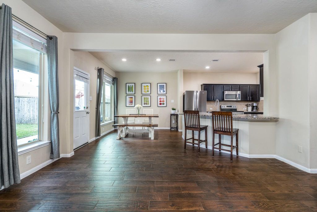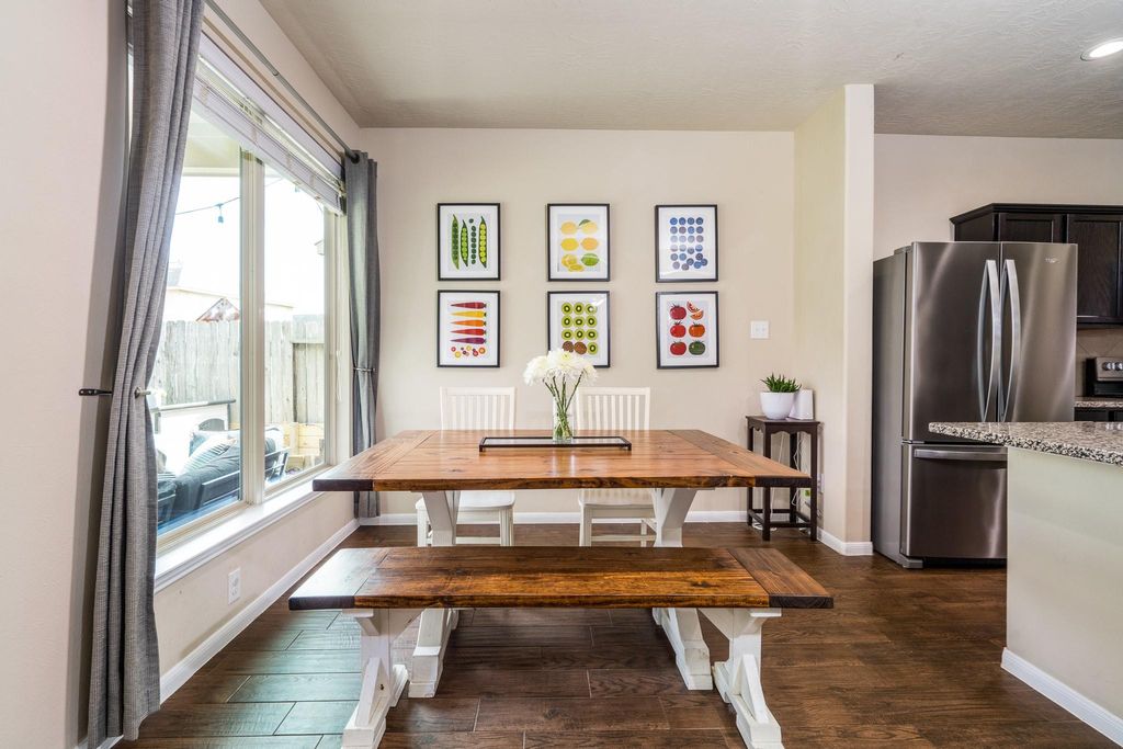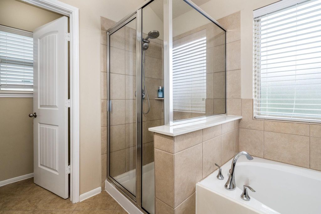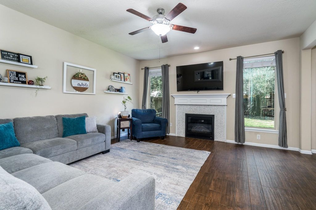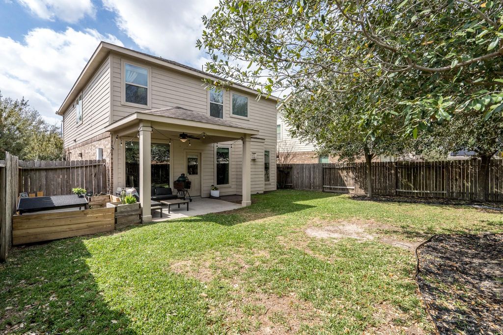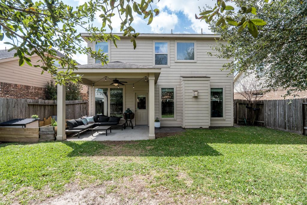 Welcome to 8218 E. Pine Creek Bend, located inside Pine Creek at Canyon Lakes West. This Beazer built home is beautiful and spacious featuring 3 Bedrooms, 2.5 baths, gameroom and an OPEN-CONCEPT floorplan, plus a large kitchen with the most amazing pantry, ceiling fans in every room and HIGH ceilings. The enormous primary bedroom is separate from the other bedrooms & features a large en-suite bathroom with a separate soaking tub & shower, a large walk-in closet, & vanity with double sinks. The kitchen features a custom walk-in pantry, tons of cabinet & counter space all seamlessly connected to the dining and family room! Gas is available for the cooking range! Secondary bedrooms are ample in size with large closets. The wooded backyard has a covered patio and playhouse. Enjoy numerous community amenities that include scenic lakes w/walking trails, pools, splash pads, fitness centers, playgrounds & so much more. Zoned to acclaimed Cy Fair ISD! Schedule your appointment today.