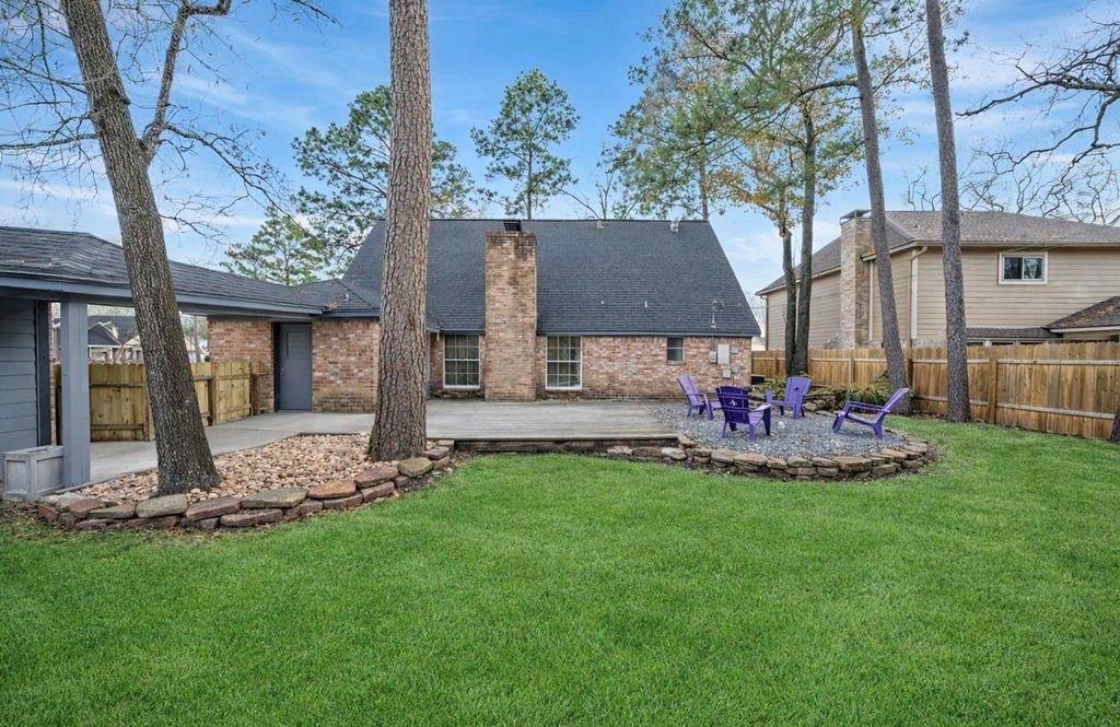 Welcome to this beautiful 2-story home 4 bedrooms and 2.5 baths, perfectly situated on a spacious corner lot with a rare 3-car detached garage. he inviting living room sits just off the entry, creating a warm first impression, while the expansive family room with a cozy fireplace provides the perfect space for gatherings and relaxation. The spacious kitchen is a true highlight, boasting new quartz countertops, abundant cabinetry, and plenty of room for meal prep and entertaining. The generously sized primary suite is conveniently located on the first floor, offering privacy and comfort. Upstairs, you'll find three additional large bedrooms. Step outside to enjoy the spacious backyard, perfect for entertaining, pets, or creating your own outdoor oasis. Located in a highly desirable area just minutes from The Woodlands Mall, this home offers unbeatable convenience with easy access to shopping, dining, and top-rated amenities. Don't miss this incredible opportunity!