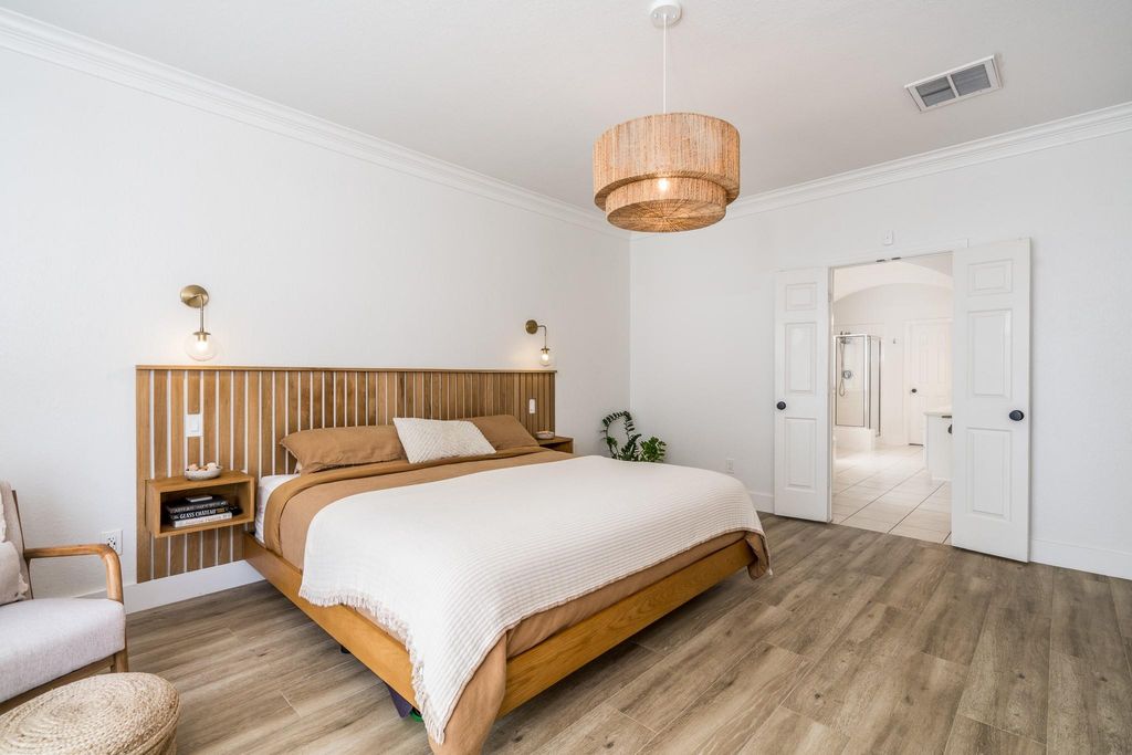 Stunning recently remodeled home that blends modern functionality with exquisite design! Highlight is the custom gourmet kitchen featuring painted wood cabinets, brass fixtures, luxury quartzite counters and backsplash, oversized custom island w/built-in cutting board, z-line stainless steel appliances, pot filler, and beverage fridge! Kitchen opens to spacious family room w/wood-look porcelain tile flooring, gorgeous fireplace w/tile surround and reclaimed wood mantel! Primary suite boasts built-in wood slat accent headboard and bedside tables! Inviting and functional mud room w/custom built cabinets, accent wall and bench! Four additional spacious bedrooms and 2 updated bathrooms up. Huge game room w/terrace that overlooks amazing pool and lake below! Backyard paradise boasts pool, covered patio, lush landscaping, and access to the lake's walking path! Roof replaced in 2023, HVACS in 2024/2025! This rare find in Fairfield is nothing short of spectacular!