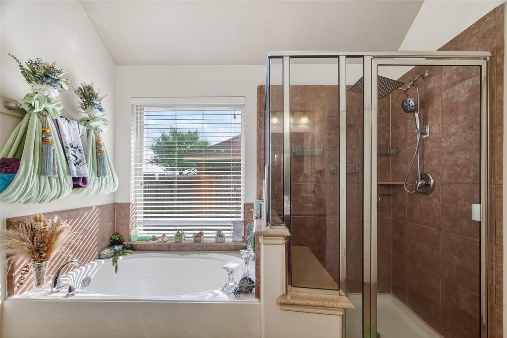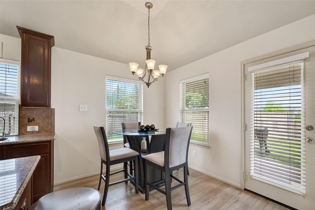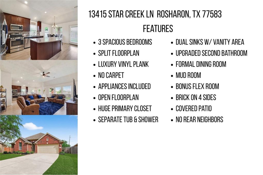 Welcome to 13415 Star Creek Ln, located in the coveted master planned community of Lakes of Savannah. This inviting and spacious all brick 1-story home offers a split floorplan, high ceilings and an abundance of natural light throughout. Enjoy the two spacious living areas, formal dining and open floor plan made for entertainment. The backyard offers privacy and tranquility with a covered patio, oversized lot and no back neighbors. The recently replaced AC will keep you cool throughout the hot Texas summers and you can relax on the patio with surround sound to elevate your entertainment experience. Indulge in the luxury of a water softener system, providing you with the highest quality water throughout the house. Unwind in the upgraded walk-in shower designed to elevate your daily bathing experience to new heights of relaxation and comfort. Embrace a lifestyle of convenience by enjoying the community clubhouse, recreation centers, resort-style pool, splashpad and pocket parks!