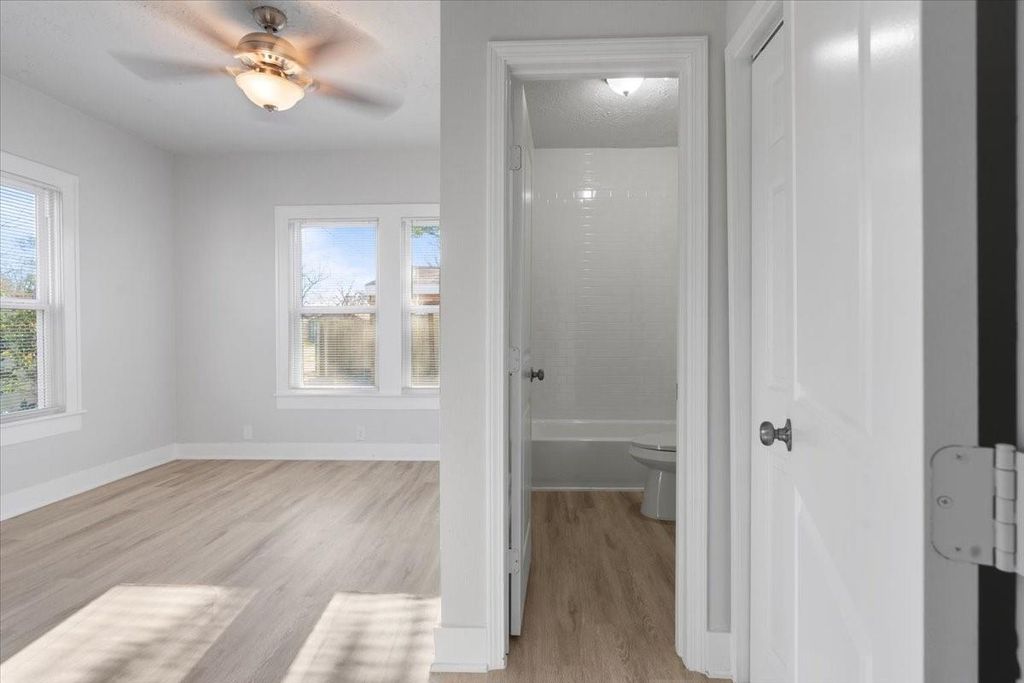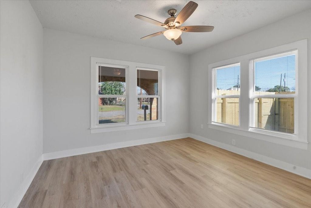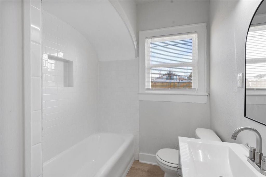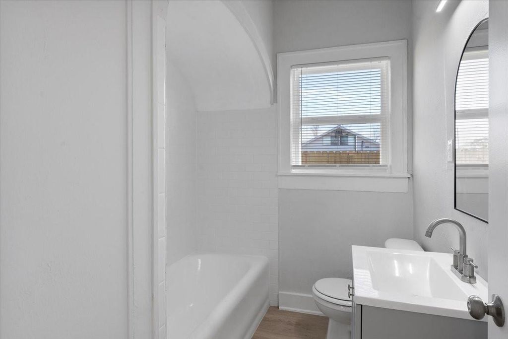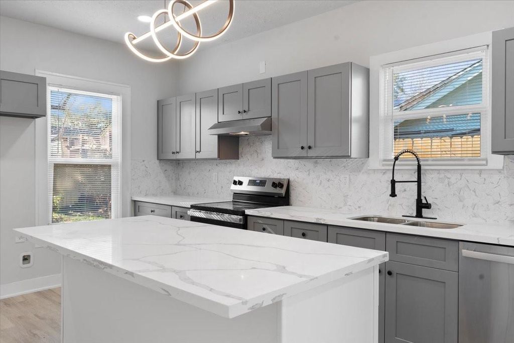 Charming Renovated Bungalow for Lease! Step into this beautifully renovated 2-bedroom, 2-bathroom full-brick bungalow, blending modern finishes with timeless charm! Built in 1935, this single-story home sits on a corner lot, offering ample natural light through its many windows. The inviting front porch welcomes you into an open-concept living space featuring gorgeous vinyl plank flooring throughout. The chef's kitchen boasts stunning quartz countertops, gray and white cabinetry, a spacious island with extra seating, and stainless steel appliances. Both bathrooms feature a shower-tub combo, and there's a stackable washer/dryer connection for added convenience. The home has energy efficient double pane windows with blinds. Step outside to enjoy the fenced-in backyard, offering privacy and outdoor space for relaxation. The home also includes a carport accessible via an automatic gate, adding security and convenience. Don't miss this rare gem"”schedule your tour today!