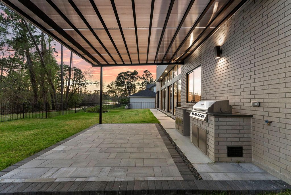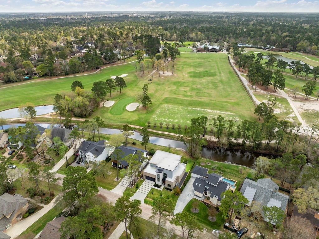 What if your backyard overlooked one of the most prestigious championship golf courses in Texas? This stunning new home offers front-row views of The Woodlands Country Club Tournament Course, host of the annual PGA Tour Champions Insperity Invitational. Located in the wonderful Village of Grogan's Mill, this modern residence features 4 bedrooms, soaring ceilings, and exceptional craftsmanship throughout. Thoughtfully designed with high-end finishes, sleek modern style, and distinctive architectural details rarely found elsewhere. Expansive windows capture breathtaking golf course views while filling the home with natural light. The open-concept layout flows seamlessly into elegant living spaces and a beautifully designed outdoor kitchen, perfect for entertaining. A rare opportunity to own a one-of-a-kind luxury home in one of The Woodlands' most iconic and centrally located communities.