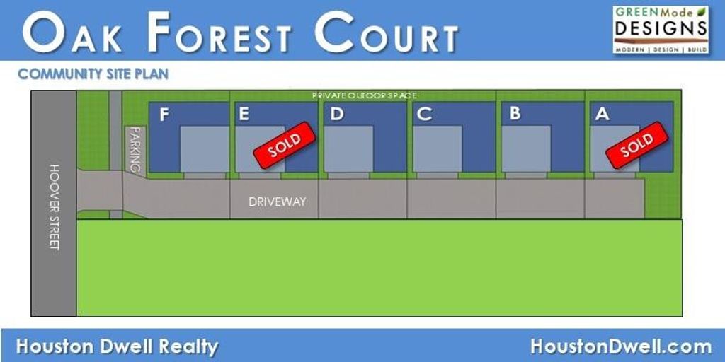 A modern home community by recognized local builder GREEN MODE DESIGNS with no HOA fees or yards to mow. Truly maintenance free living. These freestanding homes with no shared walls, 10ft ceilings, all electric appliances, outdoor space perfect for small pets. Kitchen includes stainless steel GE appliances, glass cooktop and quartz countertops. Soft-close cabinets, pull out spray faucet and separate pantry are included in this kitchen; perfect for those that love to cook and entertain. The primary suite features a coffered ceiling, dual vanity sinks, glass shower and separate soaking garden tub to relax at the end of the day. Enjoy remote access to condition your home with connected apps for the thermostat. Lower energy bills with a high efficiency AC system that also brings in fresh air. Great location a short walk to White Oak Hike & Bike trail. Visit the model home to learn more about builder options.