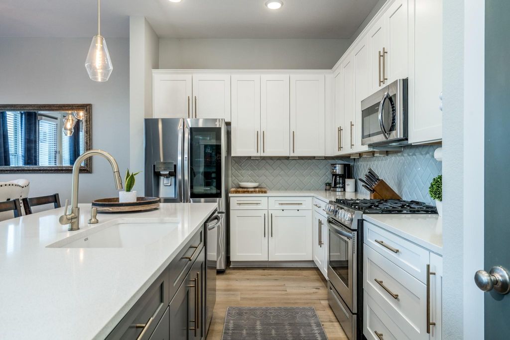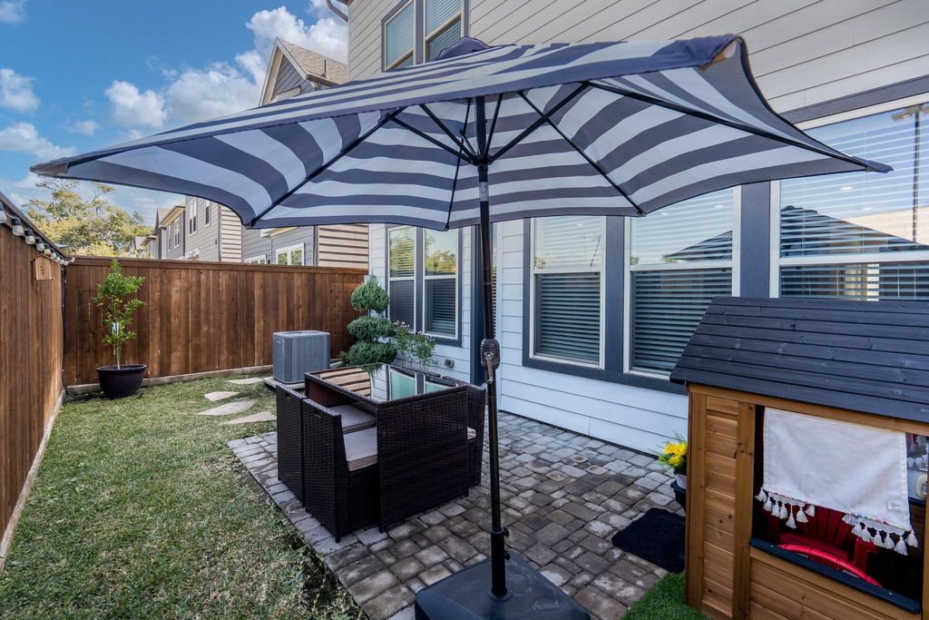Step inside this contemporary 3-bed, 2 full + 2 half bath David Weekley home built in 2021, where thoughtful design meets effortless living. Located in a secure gated community just minutes from The Heights and Downtown, this residence blends open layout living with modern finishes, abundant natural light, and a flexible upstairs game room or office. Enjoy a chef-ready kitchen, private backyard, and a location that puts shopping, dining, and entertainment within easy reach. Perfect for buyers seeking style, convenience, and comfort without compromise. Additional features include a two-car garage. HOA covers water, sewer, trash, lawn, landscaping, and gated security.