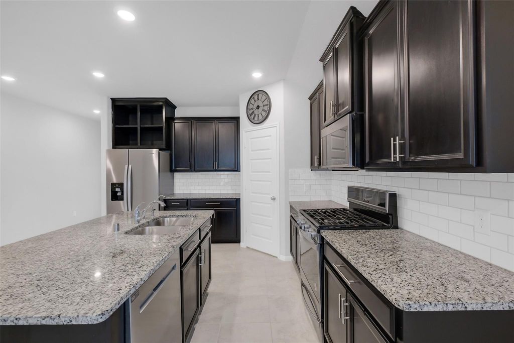 Beautiful home situated on a cul-de-sac street in the desirable Sierra Vista community! This one story boasts a great layout w/open-concept living, high ceilings, abundant natural light, a dedicated home office, 3 bedrooms & 2 full baths. The kitchen is equipped w/stainless steel appliances, a center island w/breakfast bar seating, rich wood cabinetry, subway tile backsplash & a walk-in pantry. Custom accent wall w/shelving in the family room. The primary suite is a relaxing retreat w/a soaking tub, separate shower, dual-sink vanity & a walk-in closet. A large covered patio in the backyard is ideal for entertaining. Additional highlights include fresh interior paint, full sprinkler system, spray foam insulation for added efficiency, new ceiling fans, and the refrigerator, washer & dryer are all included! Numerous community amenities: resort-style pool, heated lazy river, pickleball courts, clubhouse w/a fitness room, splash pad, multiple sports courts, and much more!