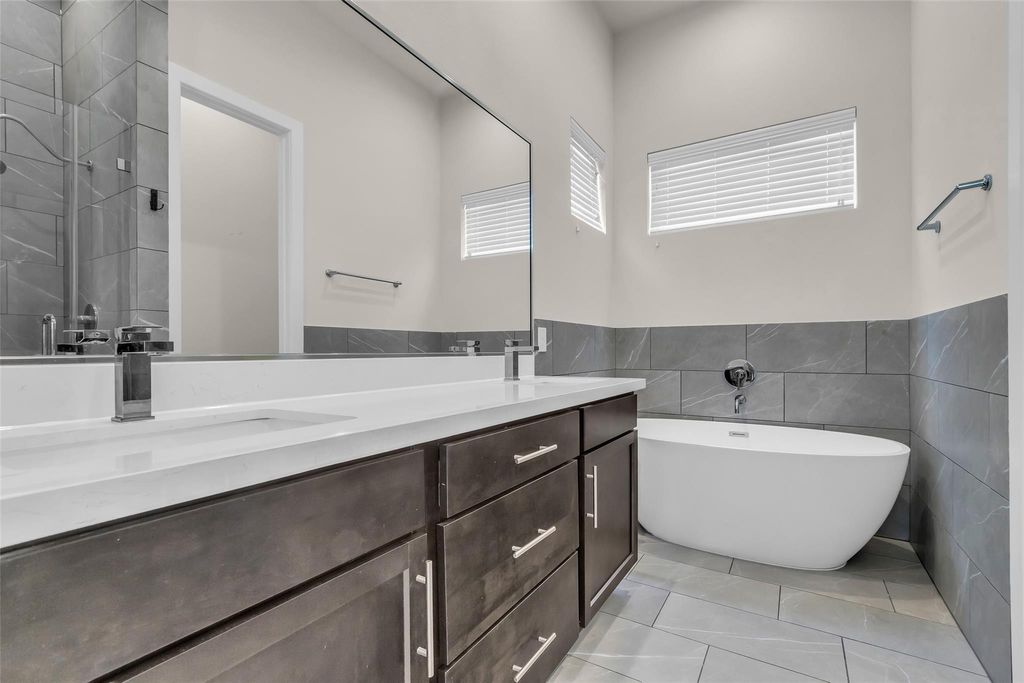 144 Knightsbridge Park Lane is ideally situated in the gated community of Park at Yale in the heart of Independence Heights. Conveniently located in close proximity to the entertainment, shopping, and restaurants on Shepherd Dr! Formerly the Model Home, this freestanding two-story home features 3 bedrooms and 2.5 bathrooms with a seamless layout connecting the main living spaces. Upon entry, a spacious foyer leads to two secondary bedrooms, generous closets, a storage area, a utility room, and a full bathroom with a porcelain tub/shower combination. Upstairs, the open-concept Great Room, dining area, and island kitchen are bathed in natural light from expansive windows and feature shaker-style cabinetry and quartz countertops. The Owner's Suite impresses with 11-foot ceilings, a luxurious bath with dual vanities, a freestanding soaking tub, a glass-enclosed shower with contemporary fixtures, and a large walk-in closet with built-in storage. Welcome Home!