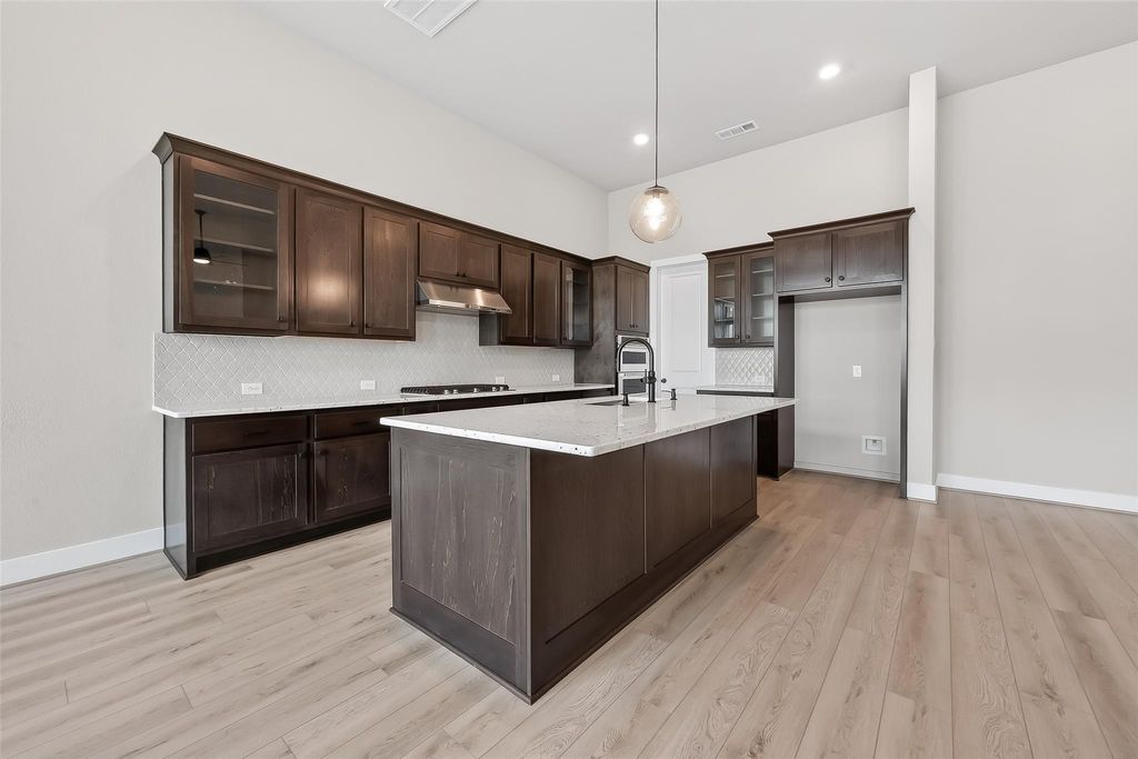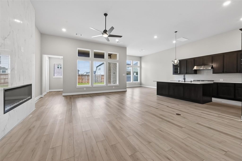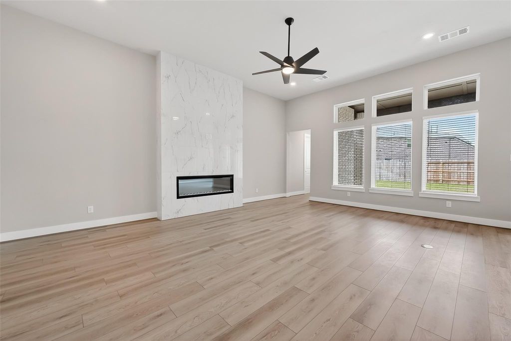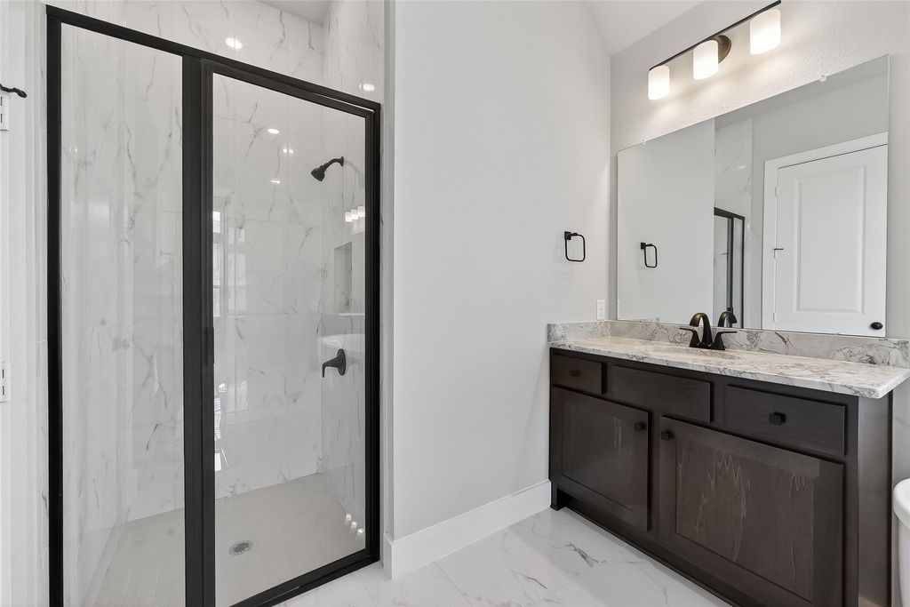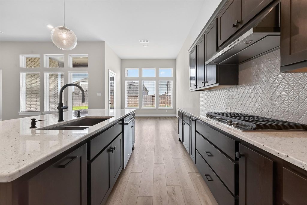 Modern one-story 4 bed, 3 bath, 3-car garage home in desirable Stonecreek Estates. This beautifully designed home features an open-concept floor plan, a chef's kitchen with custom cabinetry, gas cooktop, stainless steel appliances, and a large walk-in pantry. The spacious living room showcases a striking floor-to-ceiling marble fireplace. The primary suite offers an oversized walk-in closet and a luxurious bath with double sinks, soaking tub, and separate shower. Additional highlights include a private study, media room with French doors, and a secondary bedroom with full bath ideal for guests or multi-generational living. Enjoy a covered patio, spacious backyard with no neighbor on the left, cul-de-sac location next to walking trails, top-rated schools, and community tennis courts.