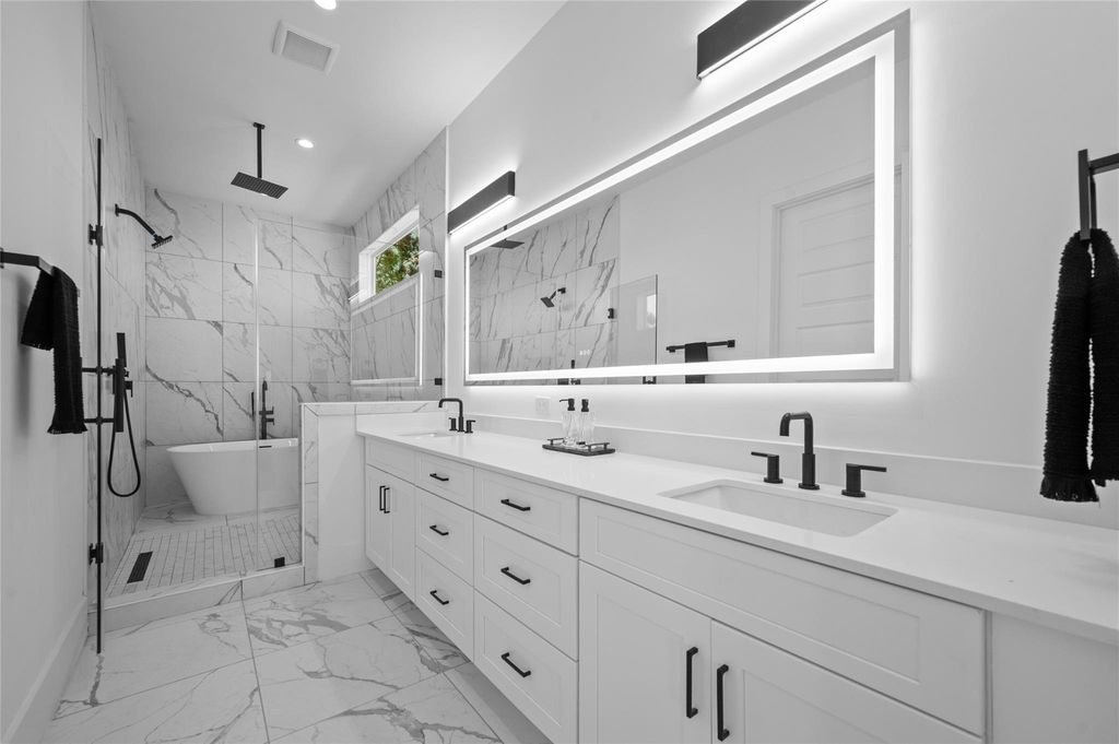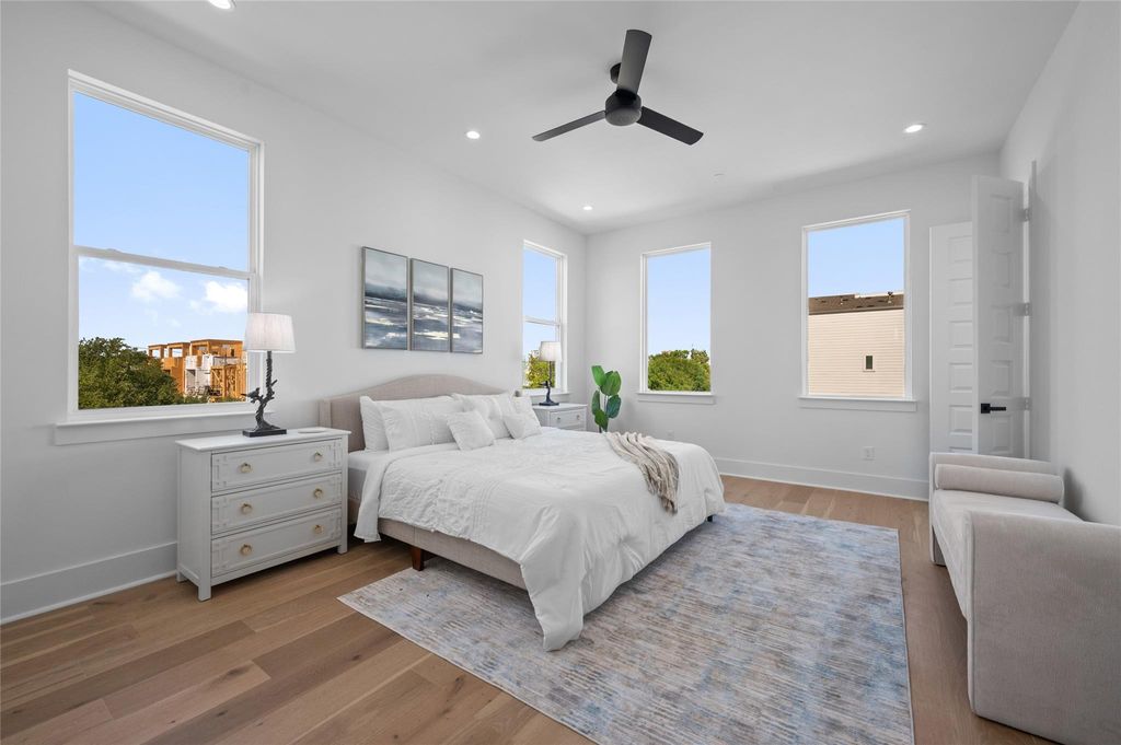 LAST HOME. CORNER HOME WITH SIDE YARD. Luxurious new construction 4-story single family home with rooftop terrace in gated community in Galleria area walking distance to Houston's premier shopping, entertainment and eateries. 1 Bedroom/office down, living room and kitchen second floor, primary bedroom and 3rd bedroom on the 3rd floor, 4th bedroom, game room, additional kitchen and rooftop terrace on the forth floor. 4th floor could be turned additional guest home with own kitchen. 11" ceiling, wood flooring all around the house, Gas fireplace, quartz countertops, high end appliances with smart HUD system, LED mirrors, up to ceiling bathroom tiles. The outstanding roof top terrace with Galleria and downtown view is an idyllic outdoor venue for hosting events or enjoying the beautiful weather.