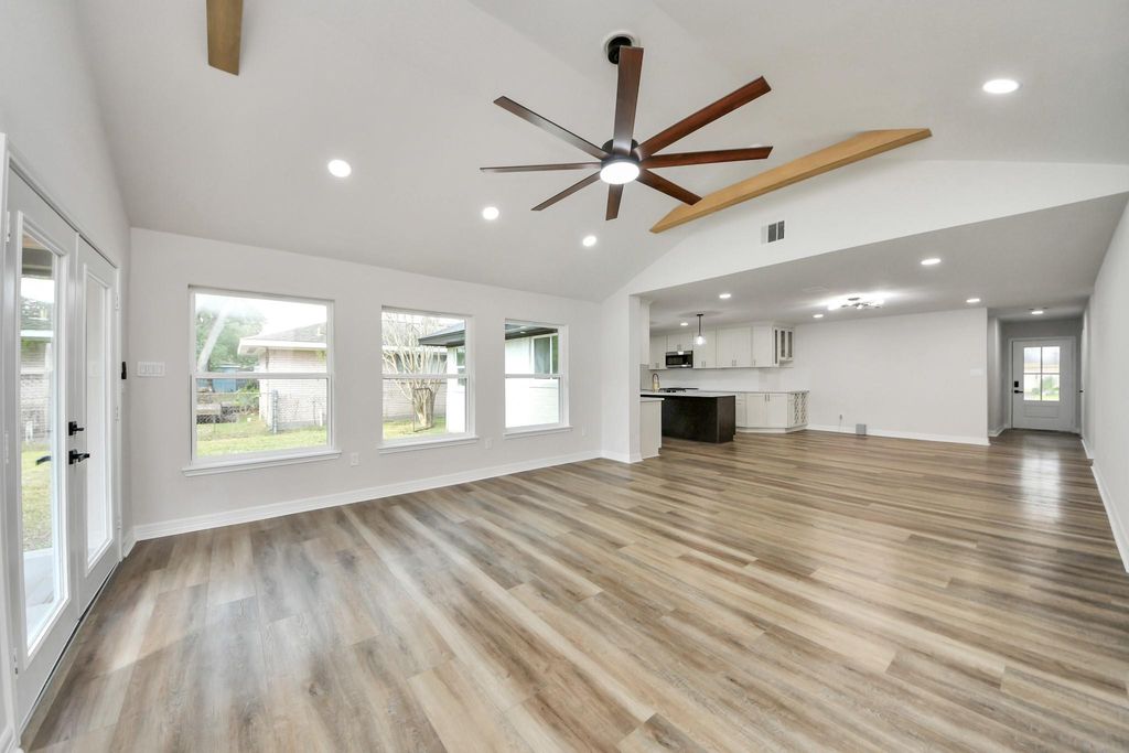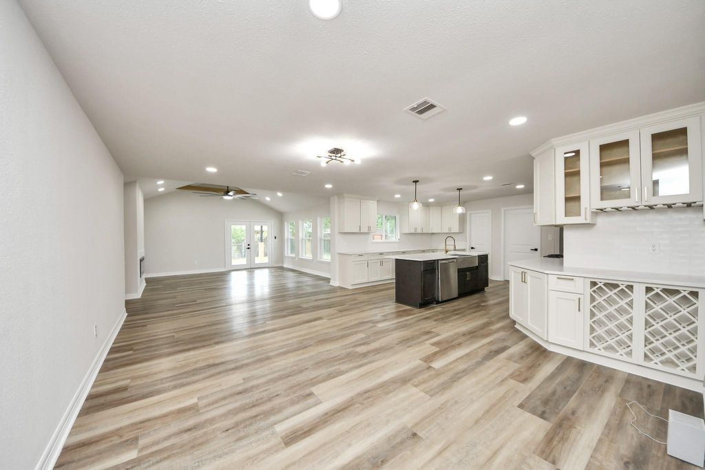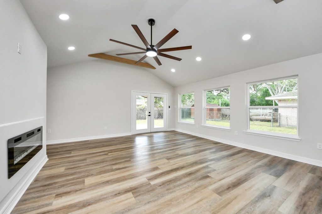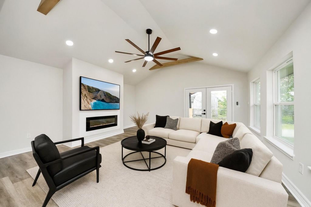 RECENTLY APPRAISED ABOVE ASKING PRICE! Beautifully remodeled 4-bedroom, 2.5-bath home with modern upgrades and timeless style! Enjoy an open floor plan with large windows, recessed lighting, and vaulted ceilings that create a bright, spacious feel. The living area features a sleek electric fireplace, wood-look flooring, and French doors leading to the backyard. The modern kitchen offers quartz countertops, shaker cabinets, gold hardware, stainless steel appliances, and a large island with a farmhouse sink. The primary suite includes a walk-in closet and an elegant bath with a frameless glass shower and quartz vanity. Outside, a spacious backyard with a covered patio is perfect for entertaining or relaxing. Two-car garage accessible through the driveway. Schedule your showing today!
