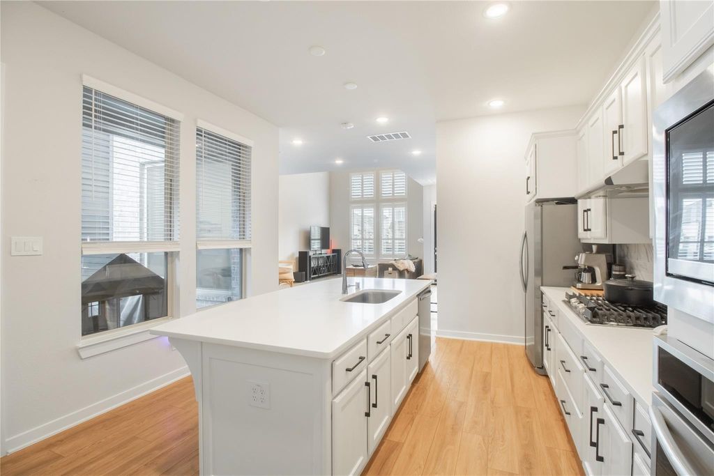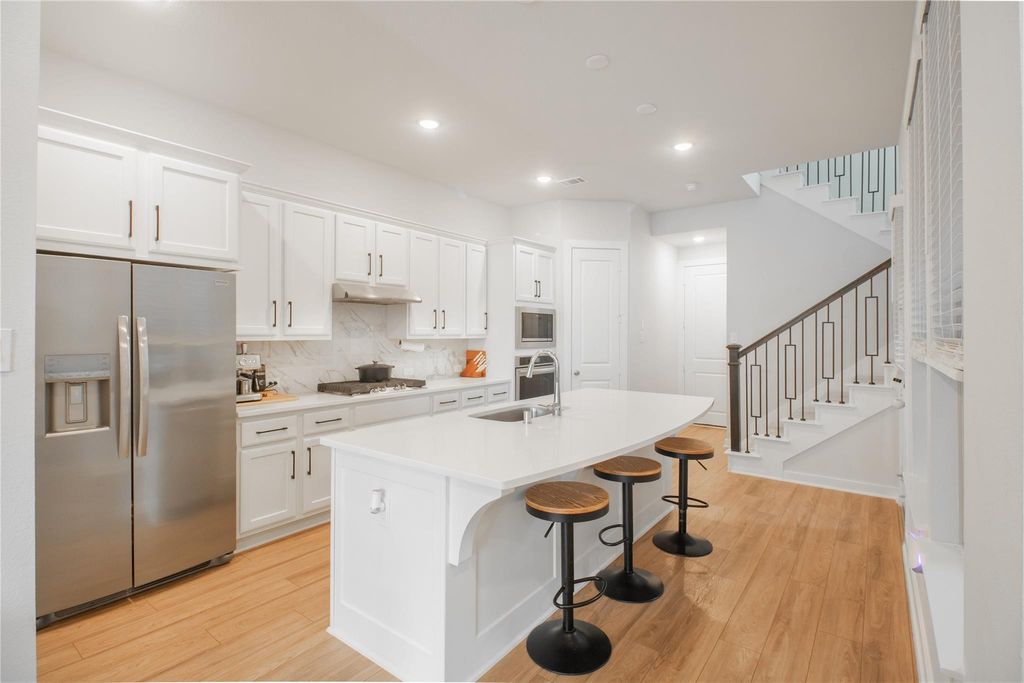 Built by Highland Homes, this well-maintained Bridgeland Central luxury villa offers a modern design with soaring ceilings, abundant natural light, and a functional open layout. This two-story home features 3 bedrooms, 2.5 baths, and a rear-load 2-car garage, with upgraded hard surface flooring throughout the main living areas and large windows that create a bright, airy feel. The kitchen opens to the family room and includes Silestone quartz countertops. The spacious primary suite offers dual vanities and a large walk-in shower. Upstairs includes the primary and secondary bedrooms, a full bath, and a versatile game room. Additional highlights include a full yard sprinkler system, exterior maintenance covered by HOA dues and zoned to Cy-Fair ISD schools, along with energy-efficient construction for lower utility costs.