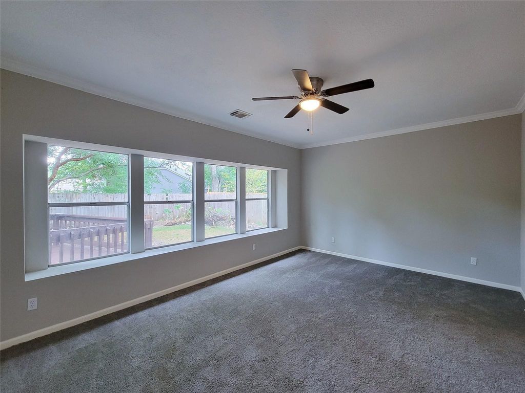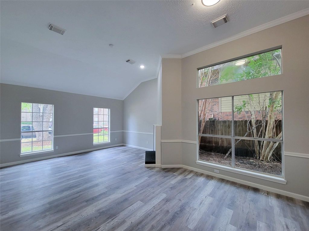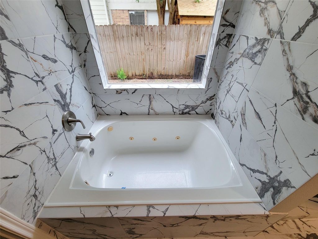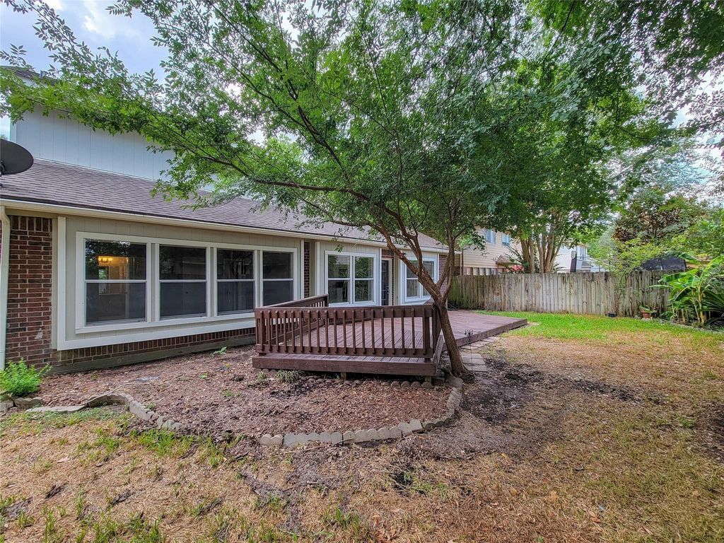 Four spacious living areas, including a large living room, formal dining room, dining area, and breakfast nook, paired with a brand new kitchen and backyard retreat make this home stand out immediately. This 3 bedroom, 2.5 bath two story features high ceilings, an open floor plan, vinyl flooring, and a cozy wood burning fireplace. The new kitchen shines with granite countertops, white cabinets, stainless sink, and new appliances. Upstairs offers a flexible game or media room with closets and a large window. The primary suite delivers with a whirlpool tub, tiled walk in shower, and spacious walk in closet. Convenient to schools, parks, dining, grocery stores, and US 290.