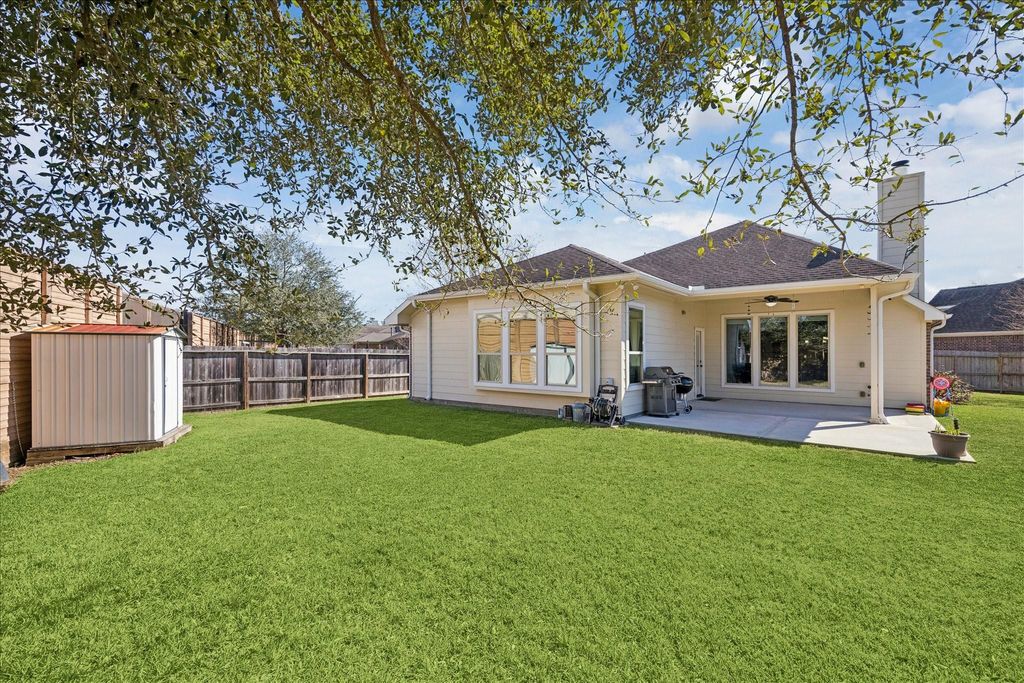 Charming single story home with an open floor plan featuring three bedrooms and two full baths. Light filled living spaces create an easy flow for everyday living and entertaining. Kitchen features granite countertops, stainless steel appliances, gas stove, and cabinets feature soft close doors and drawers. Home features a tankless gas water heater as well. Located on one of the largest lots in the neighborhood, this property offers exceptional outdoor potential with plenty of room for a pool or future expansion. A high rear privacy fence, which is maintained by the mud district, provides added seclusion. The patio is ready for a future outdoor kitchen with plumbing in place for hot and cold water, sewer, and natural gas connections. Meticulously maintained by the original owner, this well cared for home is a rare find with space, privacy, and endless possibilities. Garage features a 5 ft extension for extra storage. Close to 249/99/beltway 8. Close to Vintage Shopping Center