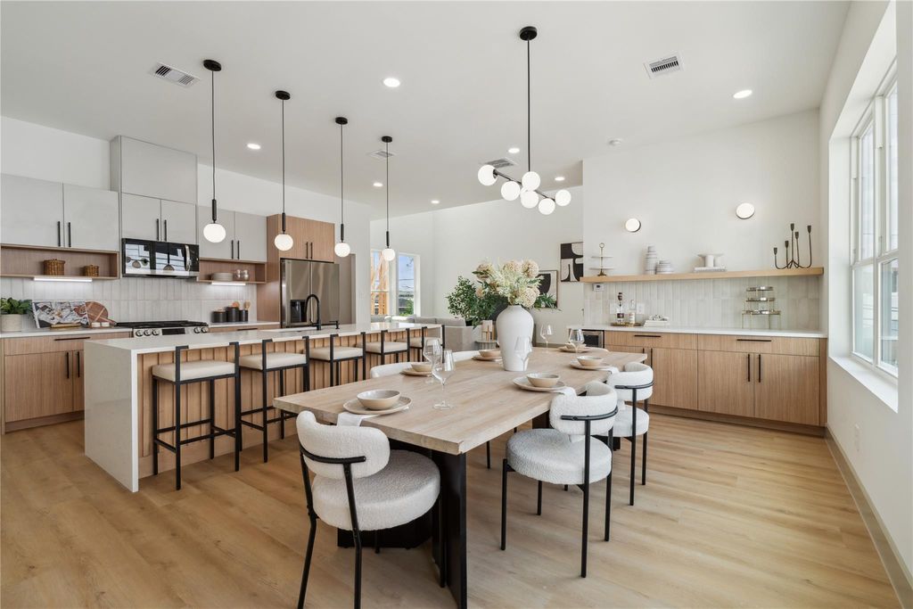 Discover Vecino Homes' largest community"”The Delafield Project"”featuring 18 homes in a privately gated setting just minutes from University of Houston, the Medical Center, East River, and Downtown. 3 outdoor spaces"”two for pets and one for people"”featuring a built-in outdoor grill. Designed by Viarq Designers, who have taken the market by storm with interior designs. This plan features dramatic two-story ceilings in the living area, surrounded by an abundance of windows that flood the space with natural light. The chef's kitchen features state-of-the-art stainless steel appliances, including an oversized island for five, flat-panel European cabinetry, and low-maintenance SPC flooring. The dining area includes a full dry bar. A 1st-floor bedroom with a full bath offers ideal guest space. The 3rd-floor primary suite boasts vaulted ceilings, a walk-in closet, dual sinks, an oversized shower with tub, extended shampoo niche. All secondary bedrooms include full en-suite baths. Welcome home!