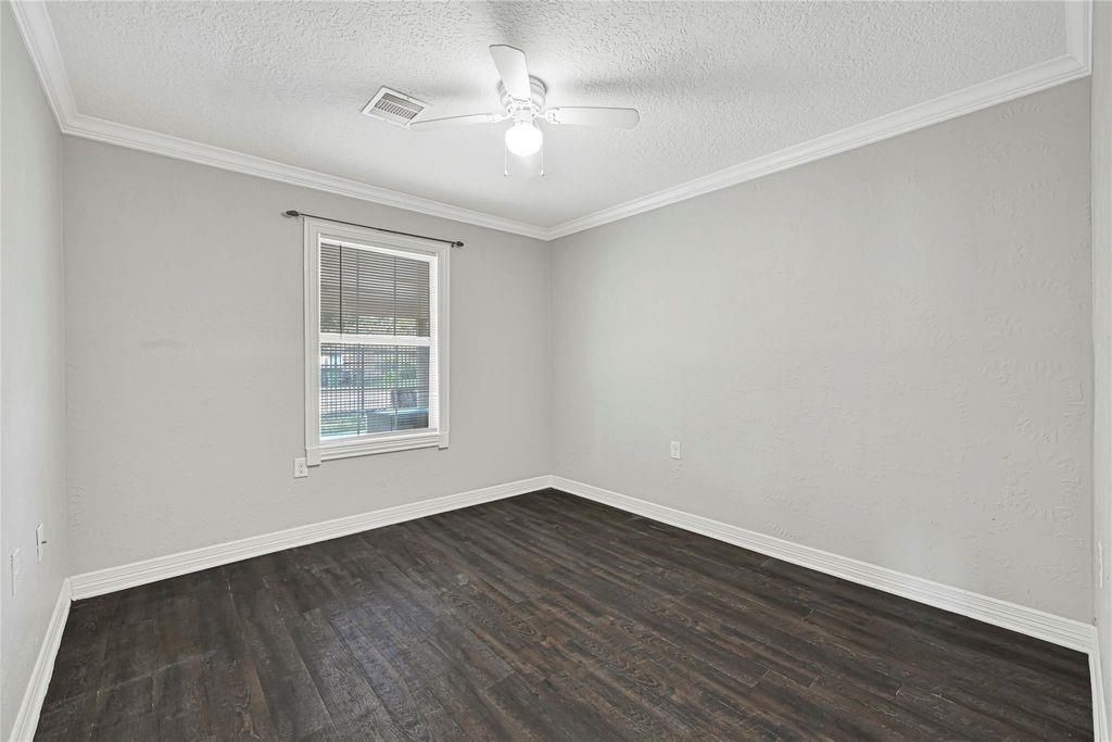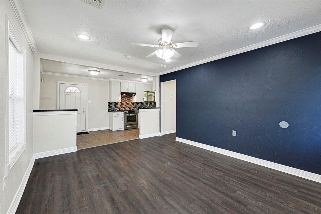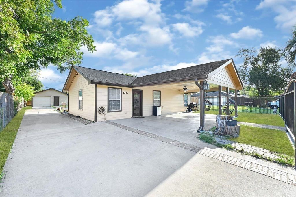Welcome to this beautifully updated 3 bed 1.5 bath home on a spacious 8,400 sq ft lot in Northeast Houston! From the moment you arrive you are greeted by a fully gated property with an automatic iron gate, manicured lawn, and stunning curb appeal. Inside you will find an open concept layout flooded with natural light, luxury vinyl plank flooring, crown molding, and ceiling fans throughout. The modern kitchen features white shaker cabinets, dark granite countertops, mosaic tile backsplash, and a stainless steel gas range. The massive fully fenced backyard offers endless possibilities and the oversized detached garage with a half bath is perfect for a future guest suite or ADU conversion!