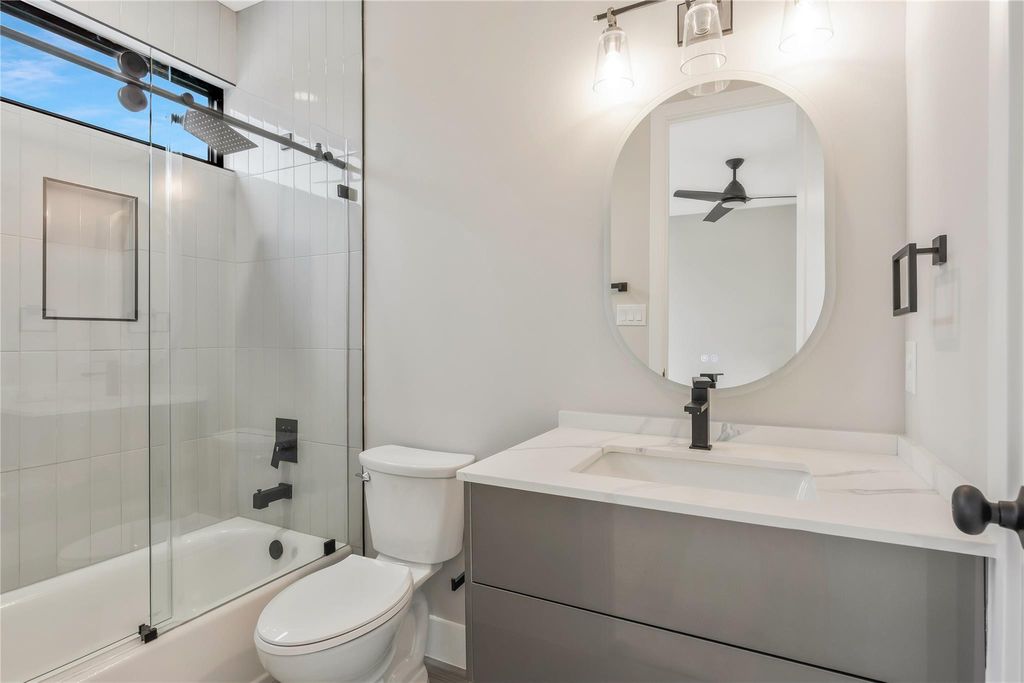Village of Blalock - a new neighborhood consisting of 12 properties and are ready for move-in. This gated neighborhood offers a perfect blend of modern comfort, style and convenience. 2229 Blalock is Plan A. It is virtually staged and shows both vacant and staged rooms. The property is designed with thoughtful upgrades and an open concept plan. The property features: bedrooms each with ensuite baths, a Living room open to the kitchen w/island, study/office with built-ins. Upgraded features: Floating staircase, quartz counter tops, 6 burner gas cooktop, stainless steel appliances, smart toilets in Primary bath, great master closets, sleek cabinets, solid core interior doors, engineered wood flooring in living & bedroom areas, tile flooring in baths, ceiling fans, tankless water heater, aluminum windows & decorator glass garage door. All information is deemed reliable but not guaranteed & should be independently verified. Some rooms have been virtually staged.