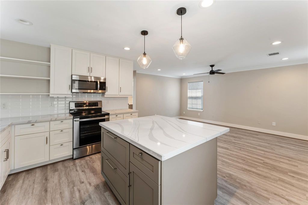 Free electricity in Houston?! Super cute bungalow in Independent Heights just minutes from Downtown Houston! This fully updated 3-bedroom, 2 bathroom home features an open-concept layout with new flooring, fresh neutral paint, and modern lighting throughout. The kitchen offers stainless steel appliances, sleek cabinetry w/ pull-out shelving in the built-in pantry, and a large Quartz island perfect for entertaining. Major upgrades include updated PEX plumbing beneath the home and within the guest bathroom shower wall (2021), New Roof in (2025) and a Tesla solar system with Powerwall 3 backup battery installed (2024). The system includes an 11.5 kWh solar array and 13 kWh battery, allowing you to take advantage of "free nights" electricity plans for extremely low energy costs. Enjoy a private driveway, inviting covered front porch, and beautifully maintained landscaping. Easy access to major roadways makes commuting a breeze!