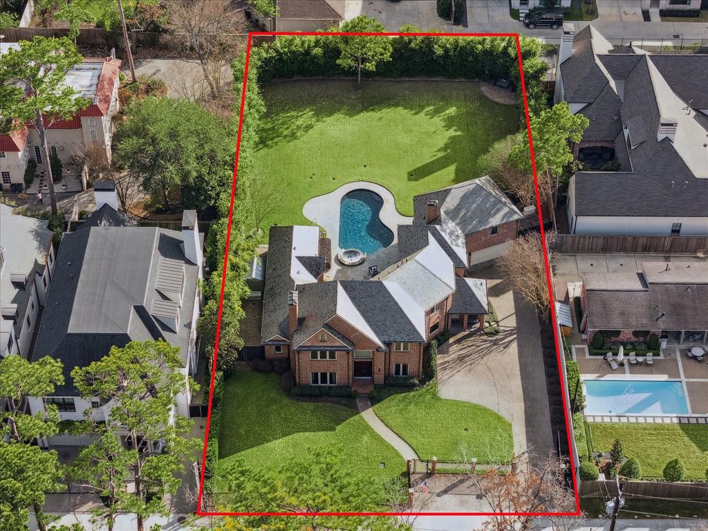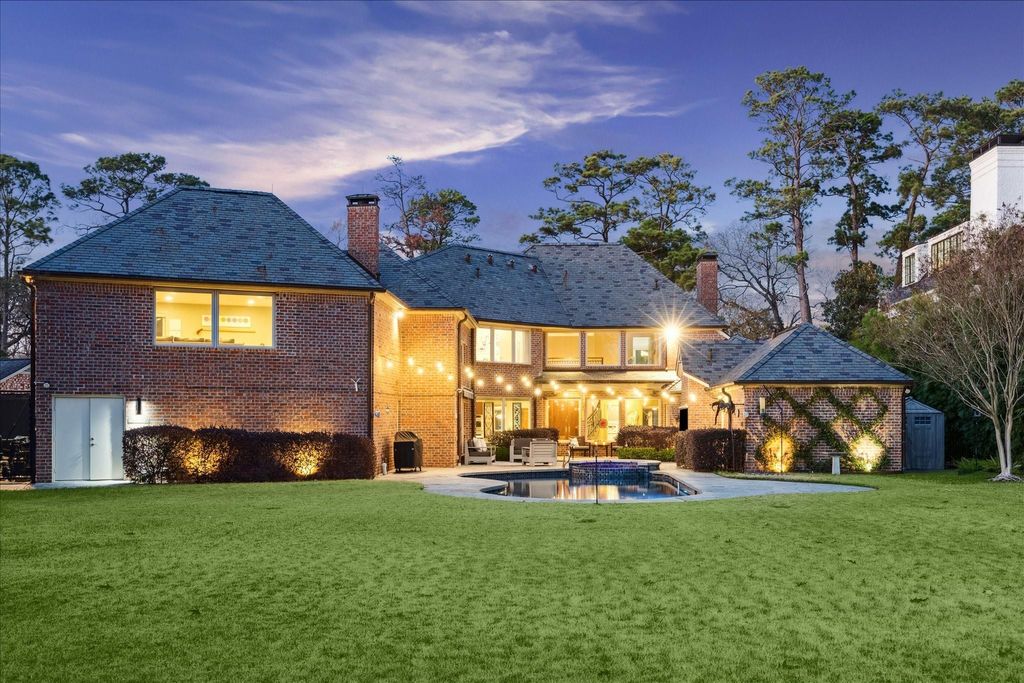 Luxurious Brick Traditional with Subtle Georgian Influence. This RARE oversized lot is ideally located in prestigious Broad Oaks next to Tanglewood. Its slate roof & copper gutter system hint the quality & workmanship. The massive lot with expansive backyard offer privacy and presence. Inside, Pennsylvania slate floors, Thermador appliances, 2 separate office/dens & so much more. Retreat to the primary bath to unwind in the steam sauna shower. 2nd floor features a cedar closet, 2 large bedrooms with Jack&Jill bath, guest bedroom with en-suite bath. Back stairs lead to a massive game/media room with conditioned storage. The back yard retreat features a heated pool with Pennsylvania slate deck, mosquito system, bamboo privacy, and outdoor projection for evenings in the spa. Additional features include 26kW Generac generator, water softener, and intercom system. Invite the team over - this is where they all want to gather! It's your perfect family gathering place and entertainers dream.
