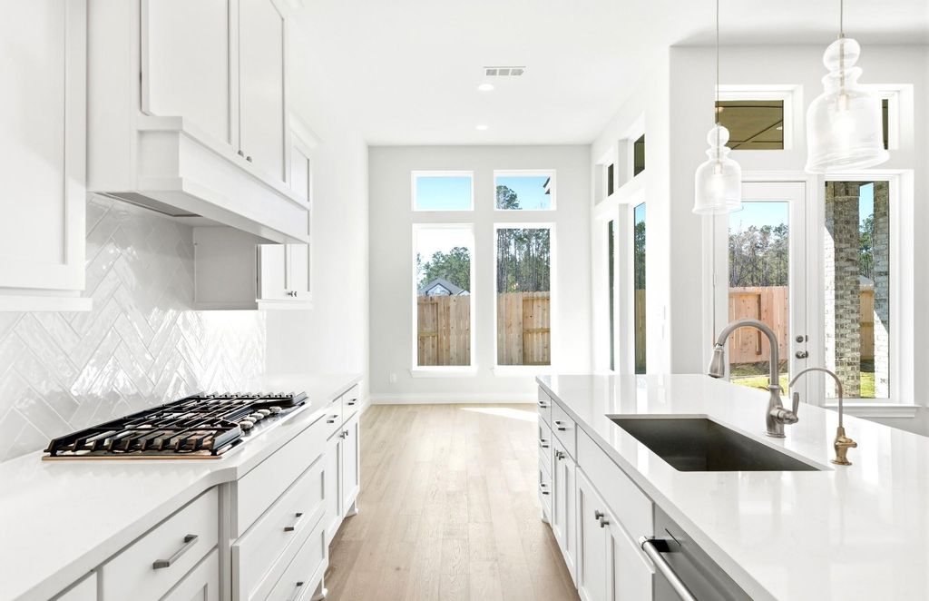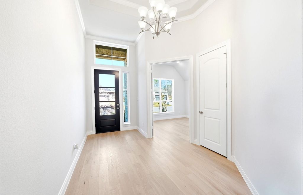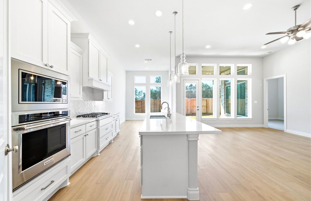 1-story home features 4 bedrooms, a study, and a 3½ car garage. An extended entry with 13' ceilings leads into the spacious 15'x22' family room with 12' ceilings, corner fireplace, and full wall of windows. Open kitchen features 12' ceilings, 42" cabinets, KitchenAid stainless steel appliances including a 36" cooktop. Master bath includes a freestanding tub, separate shower and His & Hers vanities, and an oversized walk-in closet. Sitting on a corner lot, this home completes complete with a 15' wide covered patio