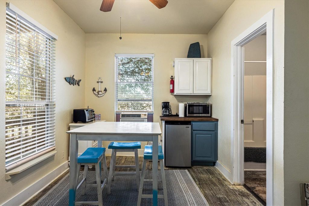 Income-producing 4-unit property in prime Galveston with $112,396 documented 2-year gross rental income. Large 1900 storm survivor converted into 2 studio apartments, a 1 large bedroom apartment, and a 2 bedroom apartment. High ceilings, original wooden floors, and a double gallery across the front. Each unit is fully furnished with STR history, adaptable to long-term rental strategy, and perfect for investors, 1031 buyers, or portfolio expansion. Walking distance to the beach, and within one mile to UTMB and The Strand HIstoric District. Income/expense reports available for this turnkey revenue opportunity! Heating and cooling by individual window units and space heaters. Ask to take a look at this grand old lady of a building. As it is an operating business, not all units may be available to see at any one time, and appointments must be confirmed.