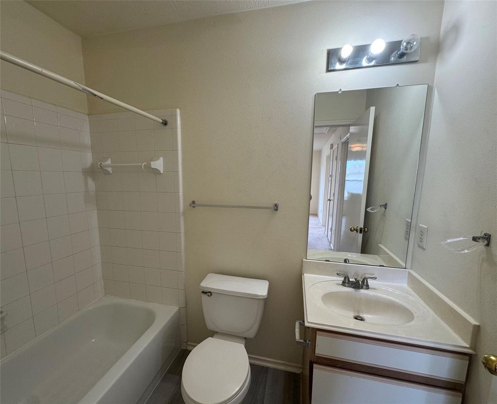 Welcome home to 8930 Aspen Place Drive, a spacious two-story home that is maintenance free and move-in ready! Step inside to an open living area with brand new luxury vinyl plank flooring, a tile-surround fireplace, and a ceiling fan. The dining area features a modern pendant light and sliding glass door that opens to the star of the home, the oversized covered back patio. With full-width coverage, tall columns, and a ceiling fan, it's built for Texas entertaining year-round, rain or shine. The kitchen offers a gas range, stainless microwave, dishwasher, and plenty of cabinet space. Upstairs, the grand primary suite features vaulted ceilings, dual arched windows, a walk-in closet with built-in shelving, and an en suite bath with soaking tub. Three additional bedrooms and two full baths complete the layout. $80/mo maintenance package includes air filter replacements, front and back yard maintenance, and AC check-ins/tune-ups. This one won't last long, schedule a tour today.