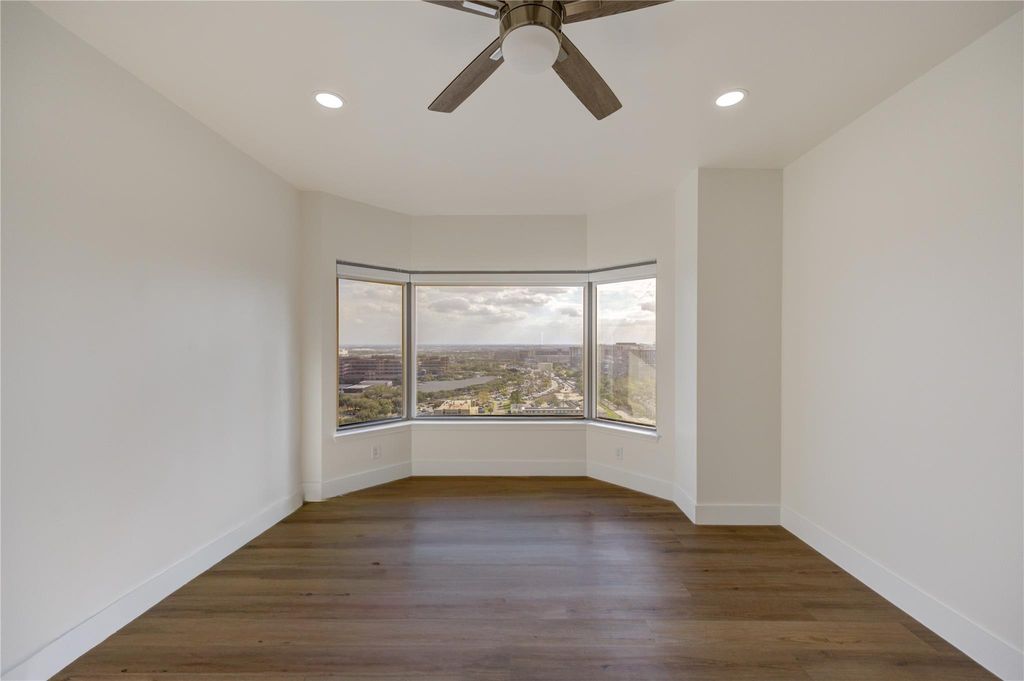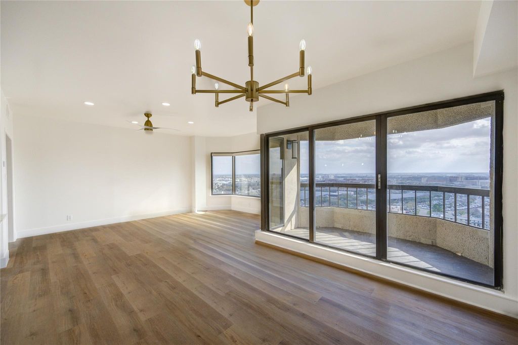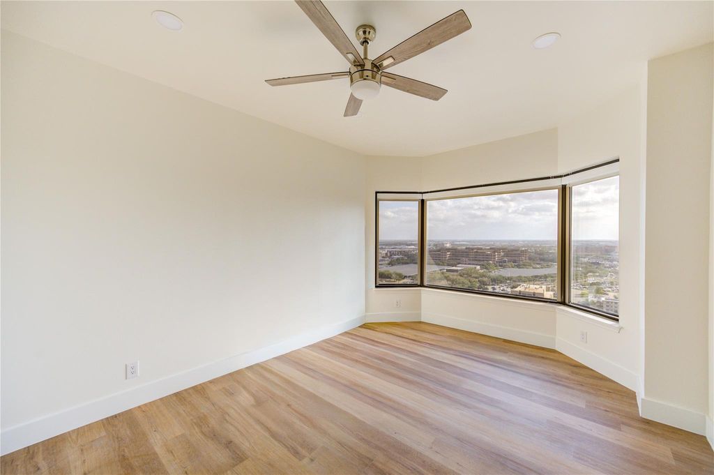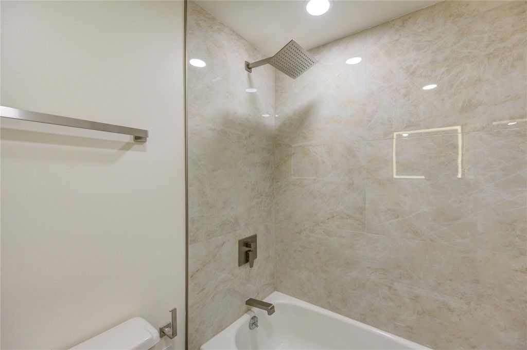 Highly sought-after Dover floor plan at The Spires, just minutes from the Texas Medical Center, Hermann Park, and Houston Zoo. Fully renovated November 2025 with luxury vinyl wood plank flooring throughout, fresh paint, new custom cabinetry in kitchen, pantry & baths, luxury countertops, glass backsplash, stainless steel appliances, designer lighting, digital thermostat, and remote blinds in all rooms. Washer & dryer included. Abundant storage.Two assigned parking spaces plus private storage. Full-service building with 24/7 concierge & valet, controlled access, double-gated garage, monitored cameras, and perimeter fencing. Amenities include a heated pool with a lap lane, 24-hour fitness center, wet & dry saunas, tennis & pickleball courts, racquetball, party rooms, outdoor grill/kitchen, and direct access to Bayou Hike & Bike Trail. Dedicated emergency power.