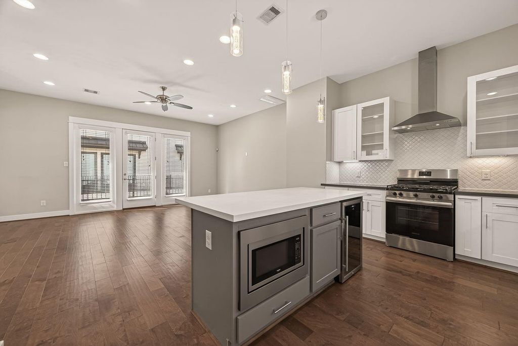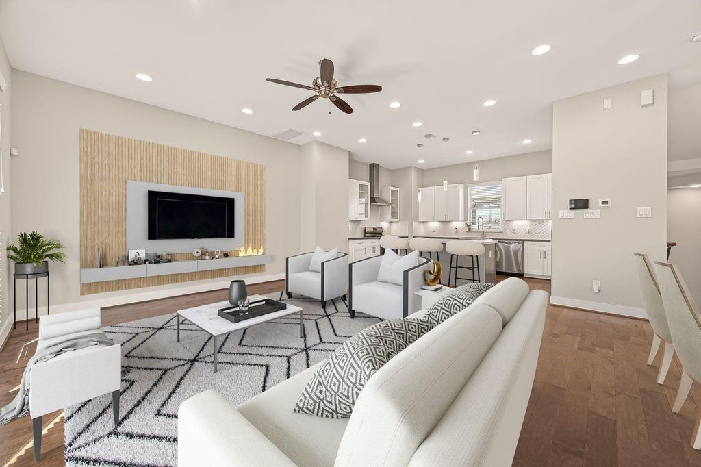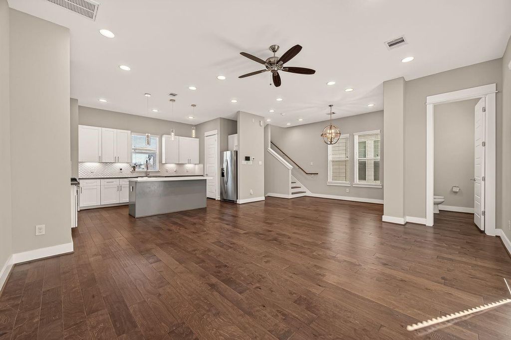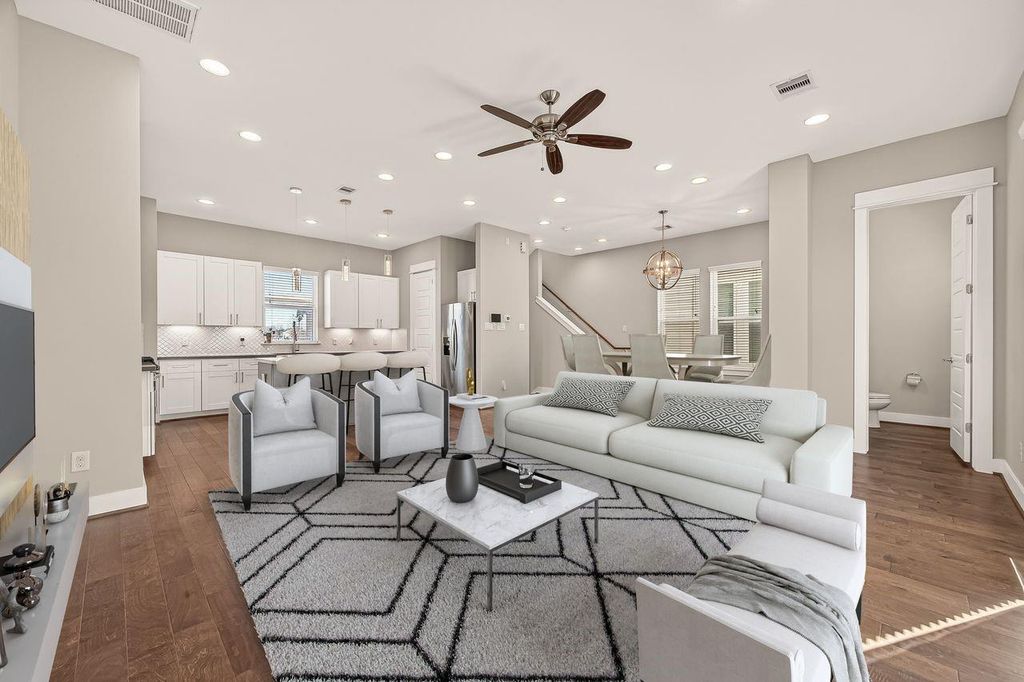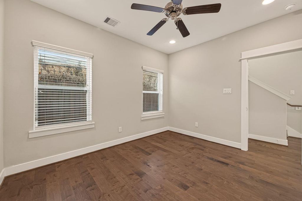 Location, Location, Location! This home is nestled in the heart of Houston near Downtown, EaDo, Midtown, Montrose, NRG Stadium and Medical Center. Inner loop living at its finest where you can enjoy Houston's culinary experiences & entertainment just minutes away! Come check out this meticulously maintained light & bright 3 bed/3.5 bath free-standing home in a private gated community. 1st floor boasts a bedroom and full bath that could also be great for a home office/gym/guest bedroom and an epoxy finished garage. Beautiful wood flooring throughout - no carpet! 2nd floor offers open-concept living w/ a modern chef's kitchen, quartz counters, stainless steel appliances, wine cooler, modern lighting & plumbing fixtures. Large windows bring in tons of natural light, high ceilings, breakfast room & half bath. Entertain & watch sunrises & sunsets on the private balcony. Primary suite showcases a walk-in closet, double sinks, shower & soaker tub. Don't miss this incredible opportunity!