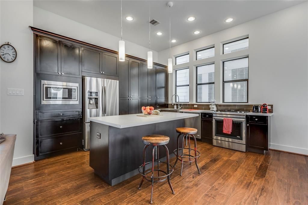 Live in the heart of EaDo in this beautiful modern 3-bedroom, 3.5-bath patio home. Designed with an open-concept layout, the second-floor living area is surrounded by large windows that fill the space with natural light and create a bright, inviting atmosphere. The spacious kitchen offers ample cabinet and counter space along with stainless steel appliances, making it ideal for everyday living and entertaining. Hardwood floors and stairs run throughout the home, complementing its clean, contemporary design. The top-floor rooftop terrace is the perfect place to relax, host guests, or enjoy stunning views of Downtown Houston. The home also features a two-car garage with additional storage space. Conveniently located with easy access to I-45, Loop 610, and Hwy 288. Just minutes from East River 9 and Downtown Houston, and within walking distance to EaDo's popular restaurants, breweries, and nightlife.