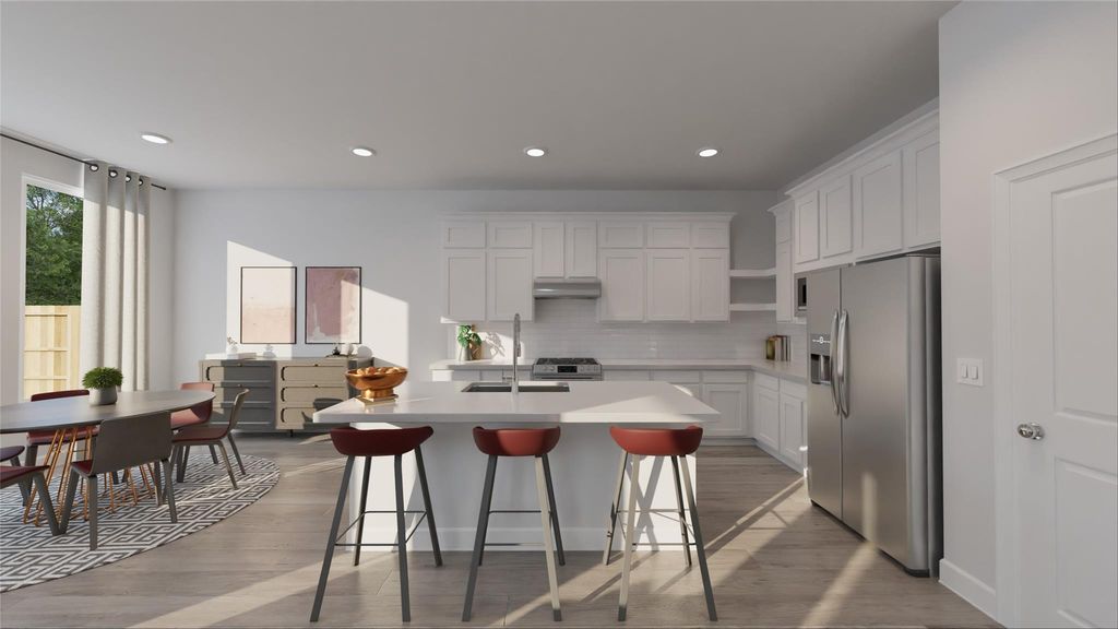 The Haven II Floor Plan - This new two-story home offers plenty of space to live and grow. The first floor consists of an open-concept floorplan shared between the kitchen, living and dining areas, with a nearby covered patio ready for outdoor entertainment and leisure. Four bedrooms are located on the second floor, including the lavish owner's suite with a spa-inspired bathroom and walk-in closet. The completion date, prices and features may vary and are subject to change. Please verify with Lennar directly. Photos are for illustrative purposes only.