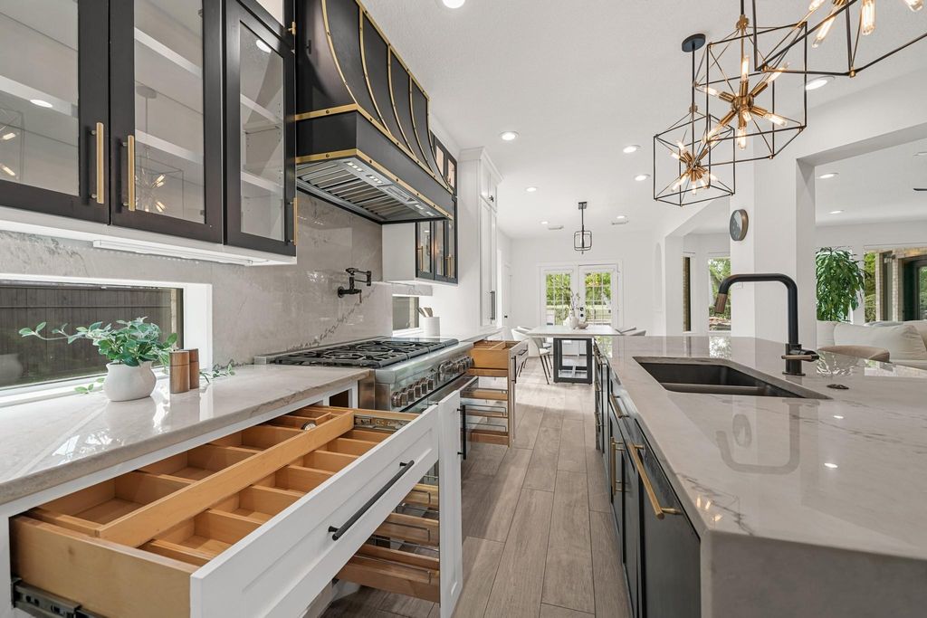 Welcome to a beautifully upgraded, move in ready residence where luxury design meets modern functionality. This exceptional home showcases extensive remodeling with high end finishes, custom craftsmanship, and curated designer details throughout. From the boutique style dream closet and spa inspired bathrooms to the chef's kitchen outfitted with Thermador appliances, every space has been thoughtfully designed. Open concept living areas create an ideal setting for both everyday living and entertaining. Additional highlights include Andersen windows, custom lighting, elegant fireplaces, and a long list of interior and exterior enhancements that elevate both style and comfort. Offering a rare blend of sophistication and convenience, this is a true turnkey opportunity for buyers seeking a home with elevated design and quality already in place, ready to enjoy from the moment you arrive.