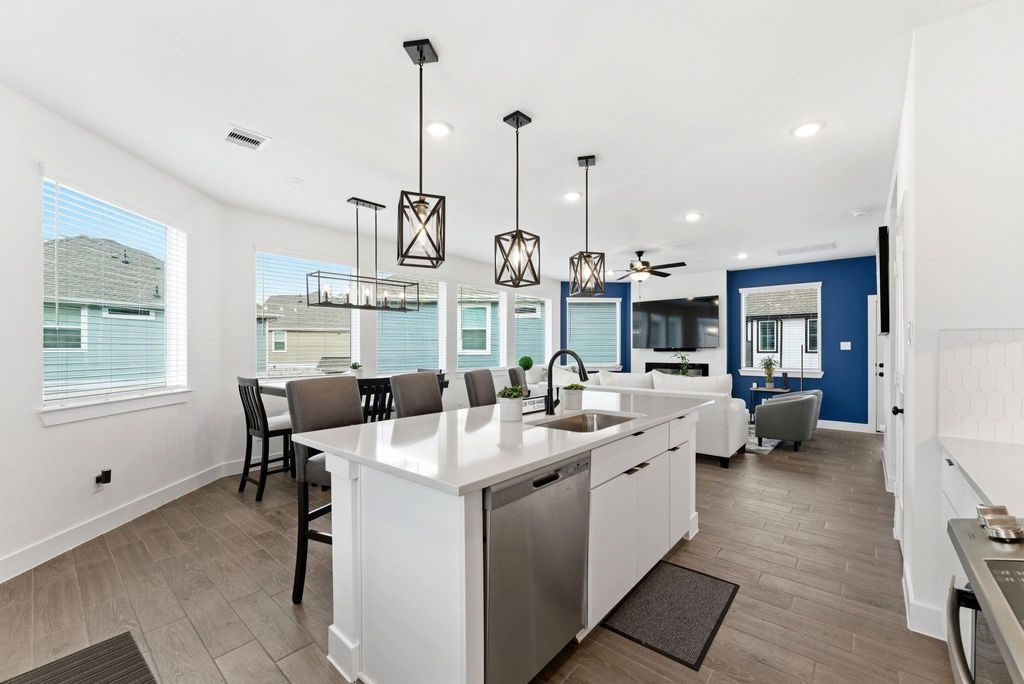 Welcome to 15139 Post Oak Falls Drive, a beautiful 2-story home designed for comfortable living and modern style. This well-maintained home features 3 bedrooms, 2 bathrooms, a study nook, and 2-car attached garage with an open layout that maximizes space and natural light. The kitchen is the heart of the home, featuring 42-inch cabinets, quartz countertops, stainless steel appliances, and a large island perfect for cooking and entertaining. The kitchen flows seamlessly into the bright living and dining areas with large windows overlooking the backyard. The spacious primary suite offers a relaxing retreat with an ensuite bath. The bedrooms provide flexibility for guests, or a home office, perfect for remote work. Residents enjoy resort-style community amenities, including tennis courts, fishing lakes, parks, green spaces, walking and biking trails, a junior Olympic-size pool, lap pool, tower slides, fitness center, and dog park! Purchasing the home FULLY FURNISHED is an option!