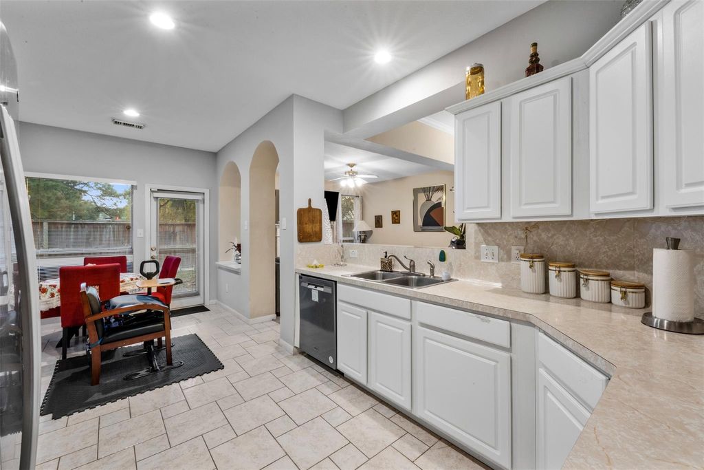 Welcome to a cozy, one-story Townhome in the Kingwood area. This home features a spacious kitchen with a breakfast bar seating, white cabinetry, and a functional layout ideal for everyday living and entertaining. You can spend your afternoons enjoying the beautiful gas fire place during the cold weather. An office room with ample windows and glass French doors allows natural light to flow into the space. The primary bedroom offers large windows with a feel of peaceful and comfort - ready for relaxation. Dont Forget - The low-maintenance backyard is a perfect addition to this home.