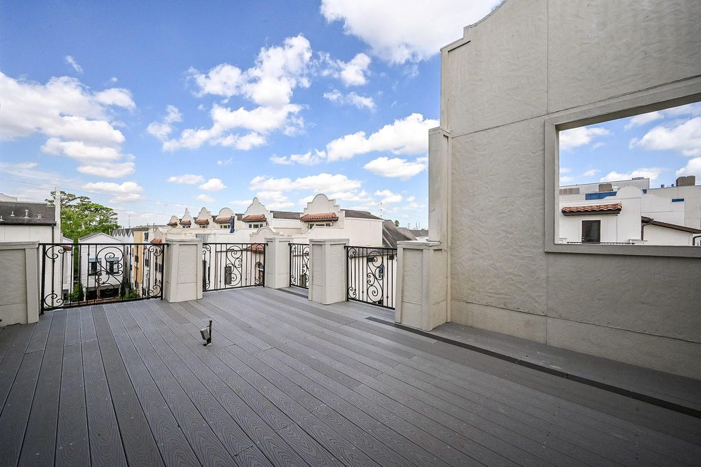 Located in The Heights, this 4-story townhome features a rooftop deck and EV garage. With 3 beds and 3.5 baths, the home offers tall ceilings, natural light, and a modern kitchen with high-end appliances. The primary suite includes a luxurious ensuite bath with double vanities, a soaker tub, and a walk-in closet. Both secondary rooms have attached baths and closets. Enjoy the private rooftop deck and low-maintenance backyard. The two-car garage has an EV charging station. The home is on a hospital power grid for reliable electricity during storms. Minutes away from parks, restaurants, and freeway access. Ready for immediate occupancy.