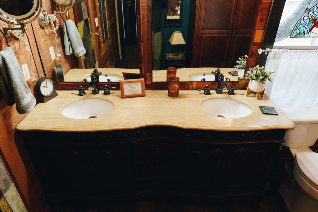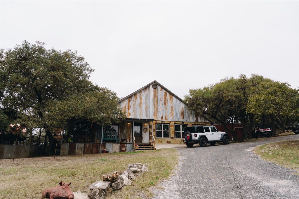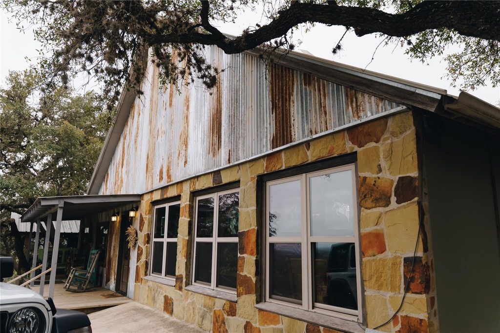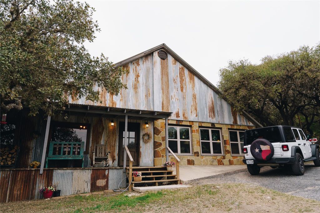 Located in the heart of Leakey, this fully renovated 2,500 sq ft home sits on 8.79 usable ag-exempt acres offering privacy and modern Hill Country living. The main home features a wood-burning fireplace, new flooring, updated windows, and a private stained porch off the primary suite. A covered rear patio (in progress) expands the outdoor space. Washer and dryer are located behind custom barn doors, and appliances may convey. Improvements include: "¢ 80-ft water well "¢ Septic replaced within the last 4 years "¢ Starlink internet "¢ Water softener room "¢ Walk-in cooler and storage area Exterior features: "¢ 3-stall horse stable "¢ Ag exemption "¢ Separate BBQ area with outdoor TV "¢ Storage container (negotiable) "¢ Flatbed trailer (negotiable) Separate cabin offers guest or income potential. STRs allowed (buyer to verify).