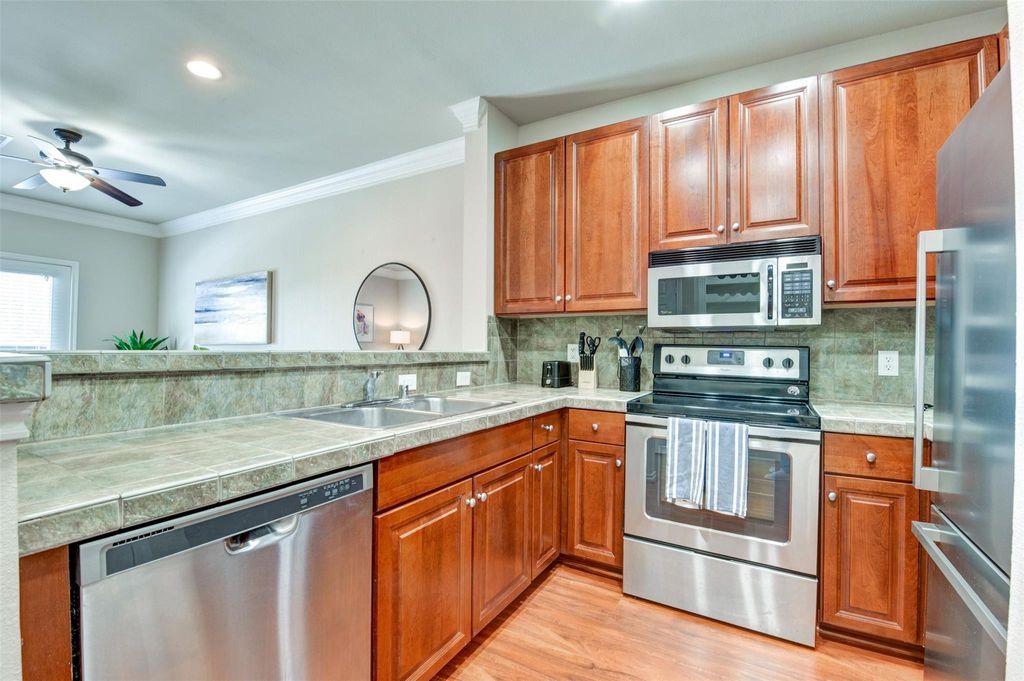 This beautifully furnished condo is move-in ready, with water included. Situated on the top floor, this unit offers extra privacy and a quiet living environment. The condo features engineered hardwood floors, stainless steel appliances, and a spacious primary bathroom. A washer, dryer, and refrigerator are included. Recent upgrades include a new AC system, water heater, and refrigerator. Amenities include a clubhouse with full kitchen and pool table, resort-style pool, luxurious fitness center, business center, and much more. Conveniently located near the Galleria Area, River Oaks, business district, art galleries, fine dining, upscale shopping, and excellent schools, with easy access to Inner Loop 610, I-10, Hwy 59, and Westpark Tollway. Whole Foods Market is nearby. This unit is ready to move in"”don't miss this opportunity! APPLY TODAY.