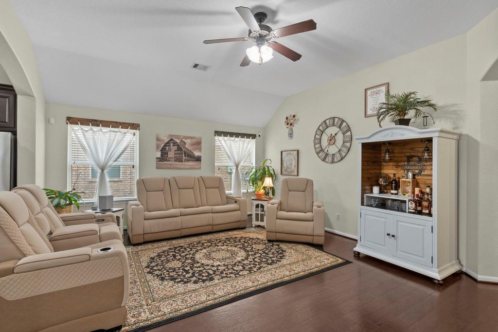 Stunning one-story home offering 1,891 SF with 3 bedrooms plus a private 4th bedroom/study with French doors"”perfect for a home office. Designed for both comfort & entertaining, this open-concept layout features a spacious island kitchen with granite countertops, stainless steel appliances including a gas range, microwave & dishwasher, seamlessly flowing into the family room. A generous dining room adds flexibility for hosting. Rich wood flooring enhances the main living areas, with tile in wet spaces and plush carpet in bedrooms. Major upgrade includes a brand new roof (March 2026), plus water softener & full sprinkler system front and back. Enjoy ultimate privacy with no rear neighbors. Located in desirable Westheimer Lakes with resort-style amenities including pools, splash pad, parks, trails & sports courts, and zoned to Lamar CISD schools, this home blends style, function & lifestyle.