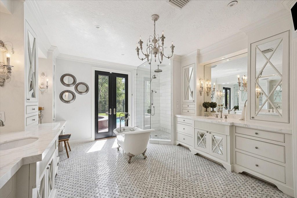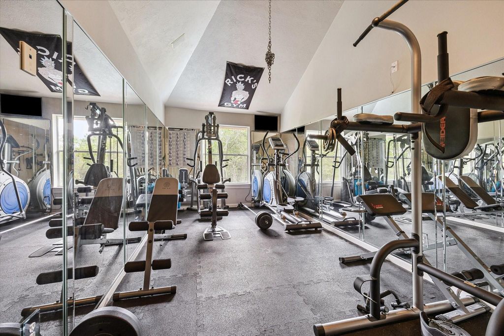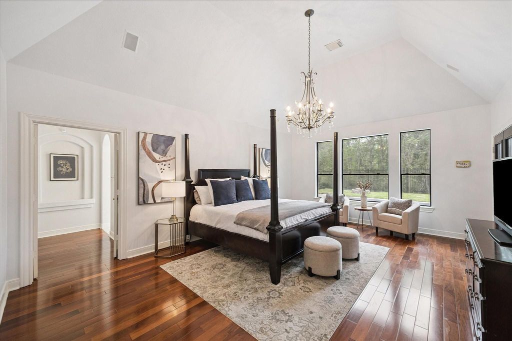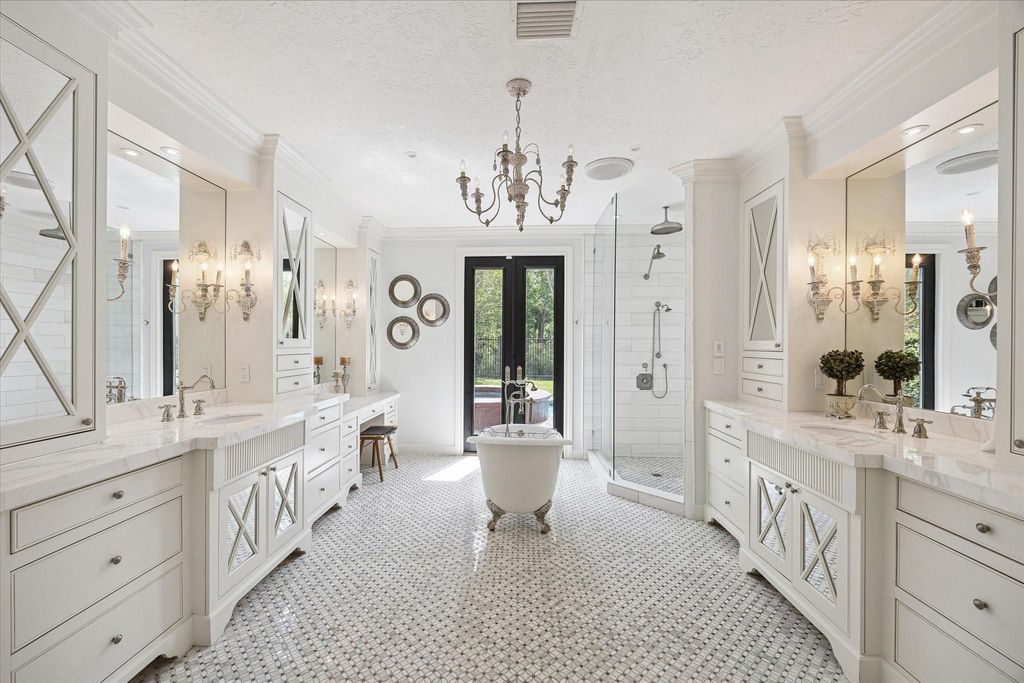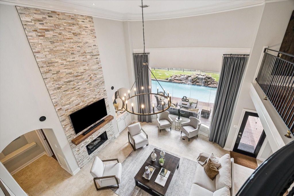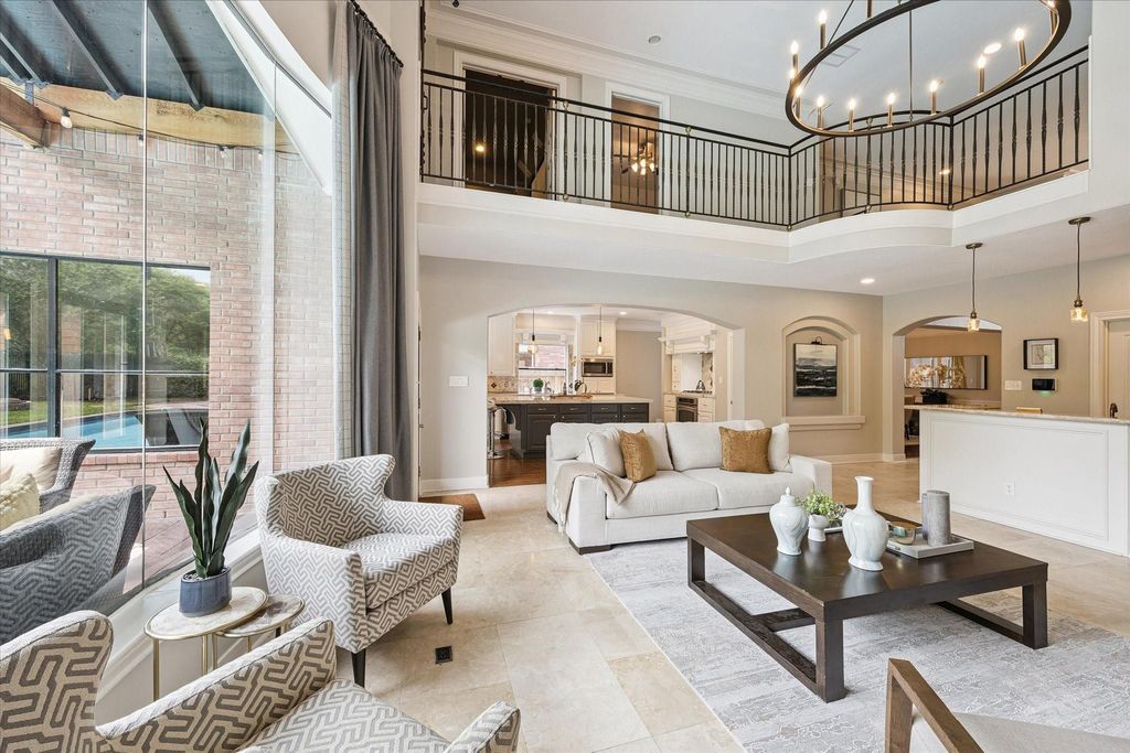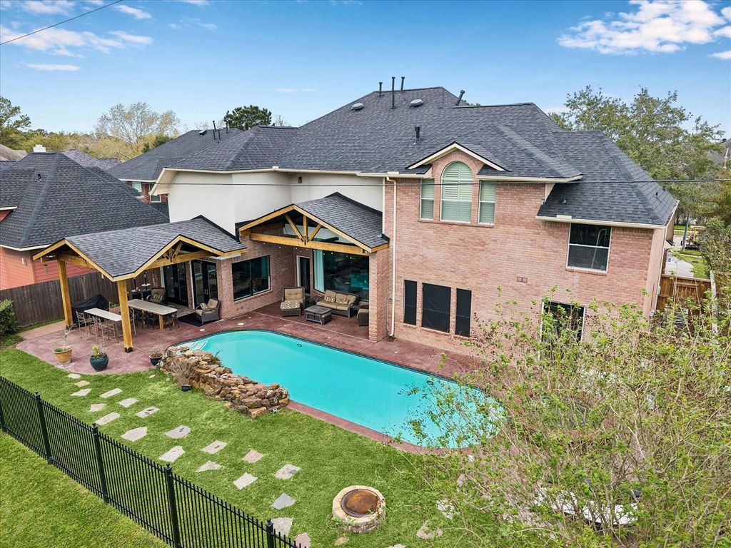 Experience resort-style living in this exquisitely renovated home, featuring desirable amenities and recent updates throughout. This residence sits on a large lot in a cul-de-sac, offering both privacy and space. The thoughtfully floor plan includes a private office, a dedicated gym, a media room, a spacious game room, a formal dining room, a breakfast area, a large den with a fireplace and built-ins, and two guest BA. The primary suite is conveniently located on the first floor with a spa-like bathroom. The gourmet open-concept kitchen features a large island, a cooktop with a pot filler, a coffee station, and a walk-in pantry. Enjoy breathtaking views of the heated pool and spa through panoramic windows, visible from every room on the first floor. Step outside to a serene, wooded setting with two covered patios; perfect for relaxing or entertaining. The kitchen and bathrooms have been remodeled, the ROOF & HVAC replaced, POOL resurfaced, and the list continues. Didn't FLOOD.