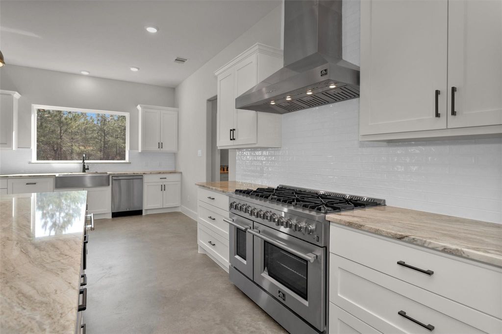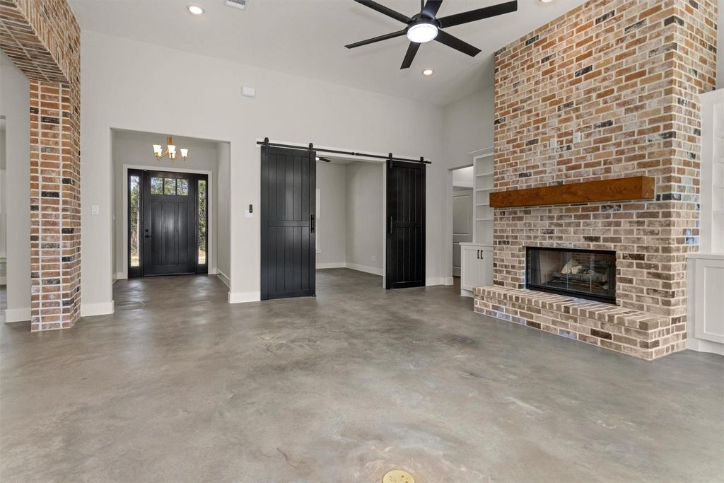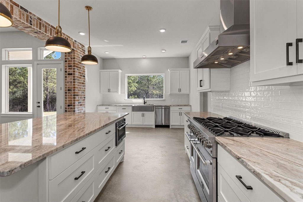 Newly completed Modern Farmhouse on 1.65 wooded acres in Republic Grand Ranch. Large kitchen which features granite countertops, open concept design, Forno kitchen appliances. Sealed concrete floors throughout home. Includes 1000 Gallon Propane Tank, whole house surge protector, Reolink, Cat6 wiring, Gutters, and Sprinkler System. High Speed Fiber Optic. Rough-in for future water softener. (3) prewired 30 amp connections for future Generator, Front Gate or Shop Barn. Underground utilities, no MUD tax. Close to shopping, dining, schools, hospitals, and entertainment. Perfect for serene lifestyle with modern conveniences nearby.