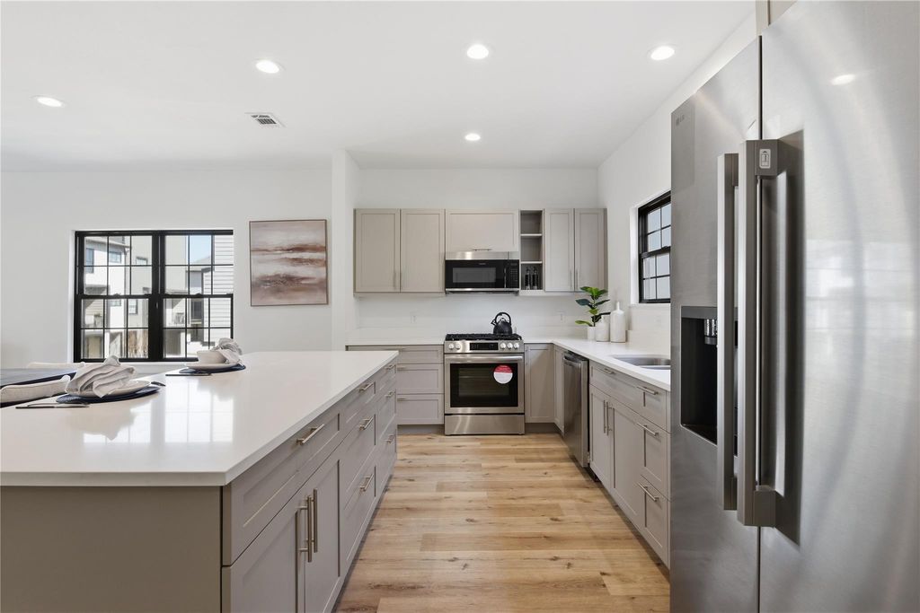 Welcome to this modern three-story home in Houston's vibrant International District. Designed for stylish and comfortable living, it features a bright open-concept layout connecting the living, dining, and kitchen areas. The chef-inspired kitchen offers premium finishes and ample space for entertaining, while large windows fill the home with natural light. Upstairs, spacious bedrooms provide relaxing retreats, including a serene primary suite with a spa-like bath. Located in the gated Mai Garden Terrace community, residents enjoy landscaped grounds, peaceful walkways, and convenient access to dining, shopping, and major roadways. A perfect blend of modern design and prime location. Don't miss out! Book your tour today.