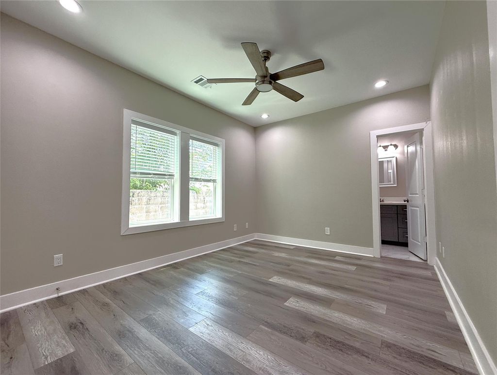 Secure now for an early June move in! With an open floorplan, this spacious & free-standing patio home is full of natural light! A few features include vinyl plank flooring, high ceilings, an electric fireplace, blue tooth speakers, recessed lighting & a balcony. The chef's kitchen offers a large island/breakfast bar, gas cooktop, convection oven, soft closing drawers & cabinets, & walk-in pantry. With adjoining dining space, the living room offers two- built in desks! In the primary suite, the bedroom features a trey ceiling, the walk-in closet offers built-in shelving & the bath offers a soaking tub, glass frame shower & double sink vanity. Immediately near to the home is a significant amount of guest parking. Water/trash/sewer included with rent!