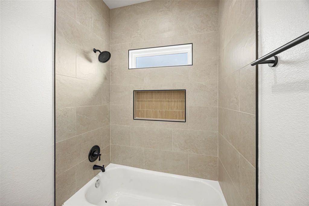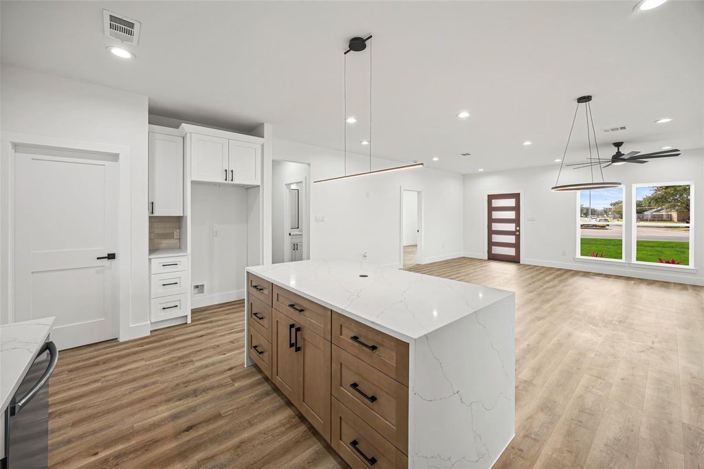 Beautiful modern farmhouse in Dayton featuring 4 bedrooms, 2.5 baths, and 2,009 sqft of living space on a spacious 10,454 sqft lot. Designed with quality finishes throughout, including solid wood doors, 9-ft ceilings, and durable laminate flooring (no carpet). The open-concept layout showcases a stunning waterfall island, spacious pantry, and abundant natural light. The primary suite offers a large walk-in closet with direct access to the laundry room for added convenience. Generously sized closets throughout the home provide excellent storage. Additional highlights include 8-ft garage doors to accommodate larger vehicles, a tankless water heater, and an oversized 13 ft x 21 ft covered back porch overlooking the fully fenced backyard.