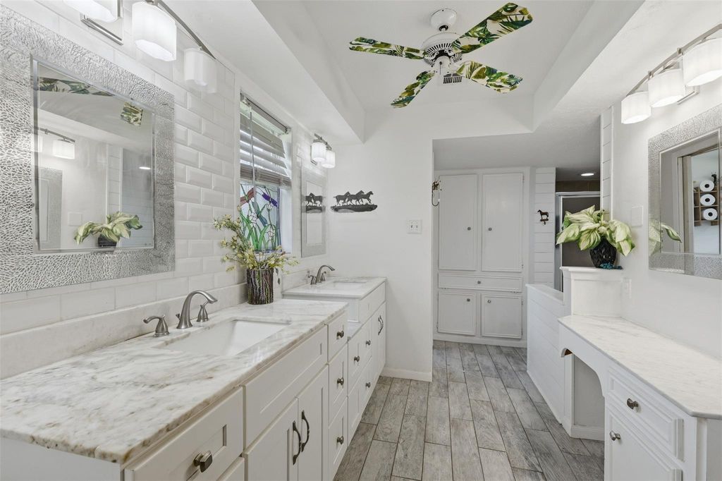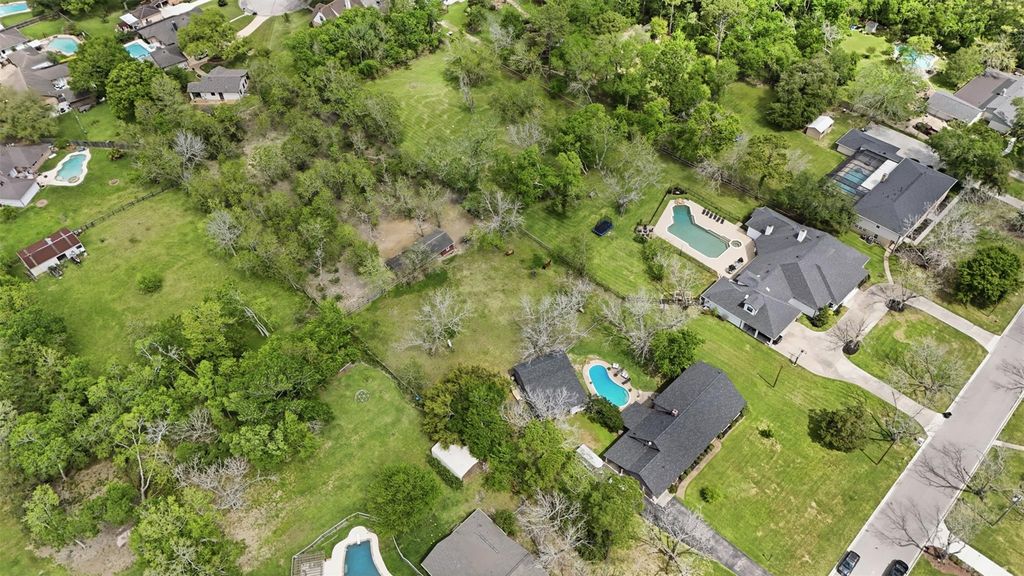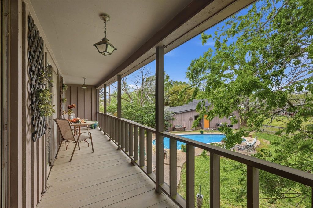Discover an exceptional Friendswood opportunity on nearly two acres that can be used for horses, family fun and more. This beautifully updated home with a roof only a few years old offers charm with no carpet for a comfortable easy to maintain lifestyle. Amazing unique features including 2 fireplaces, 2 living rooms, 2 primary bedrooms all downstairs, huge laundry room and tons of large windows that frame peaceful views of the sprawling property. The kitchen and common spaces have been thoughtfully refreshed, blending modern touches with classic charm like wood beams in the ceiling. Outside the second story terrace looks over the sprawling 1.9 acres of mature trees, pool, and climate controlled garage perfect for a game room, man cave or a workshop with a bonus 40 x 12 barn equipped with water and electricity on the property. Whether you're dreaming of a country feel with city convenience or space to create your ideal lifestyle, this gem delivers unmatched potential.